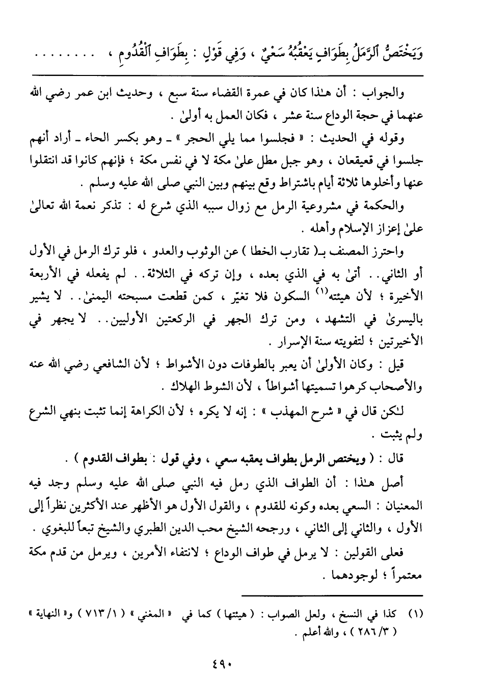 وَيَخْتَص? الر?مَلُ بِطَوَافٍ يَعْقُبُهُ سَعْيٌ، وَفِي قَوْلٍ: بِطَوَافِ الْقُدُوم،