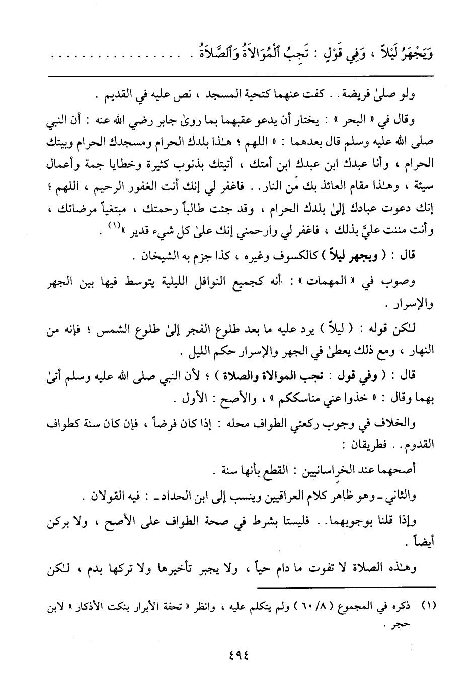 وقال في (البحر): يختار أن يدع عقبهما بما روى جابر رضي الله عنه: أن النبي صلى الله عليه وسلم قال بعدهما: (اللهم؛ هذا بلدك الحرام ومسجدك الحرام وبيتك الحرام، وأنا عبدك وابن أمتك، أتيتك بذنوب كثيرة وخطايا جمة واعمال سيئة، وهذا مقام العائذ بك من النار .. فاغفر لي إنك أنت الغفور الرحيم، اللهم؛ إنك دعوت عبادك إلى بلدك الحرام، وقد جئت طالبًا رحمتك، مبتغيًا مرضاتك، وأنت مننت علي?بذلك، فاغفر لي وارحمني إنك على كل شيء قدير).