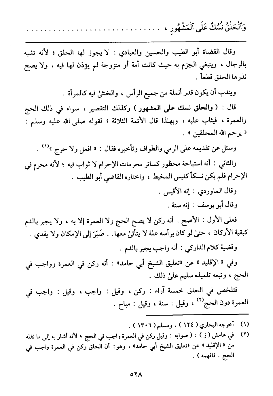 وَالحَلقُ نُسُكٌ عَلَى المَشهُورِ,