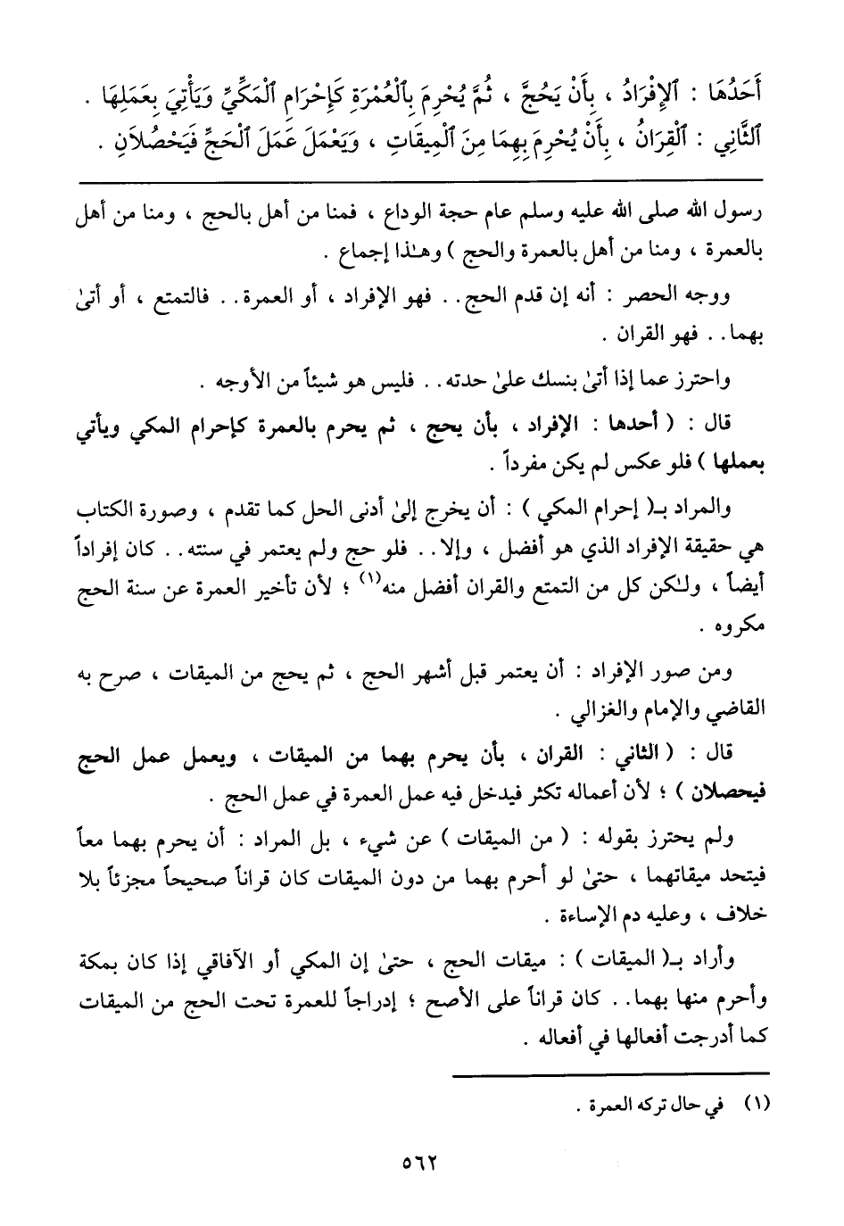 ووجه الحصر: أنه قدم الحج ... فهو الإفراد، أو العمرة .. فالتمتع، أة أتى بهما .. فهو القرآن.