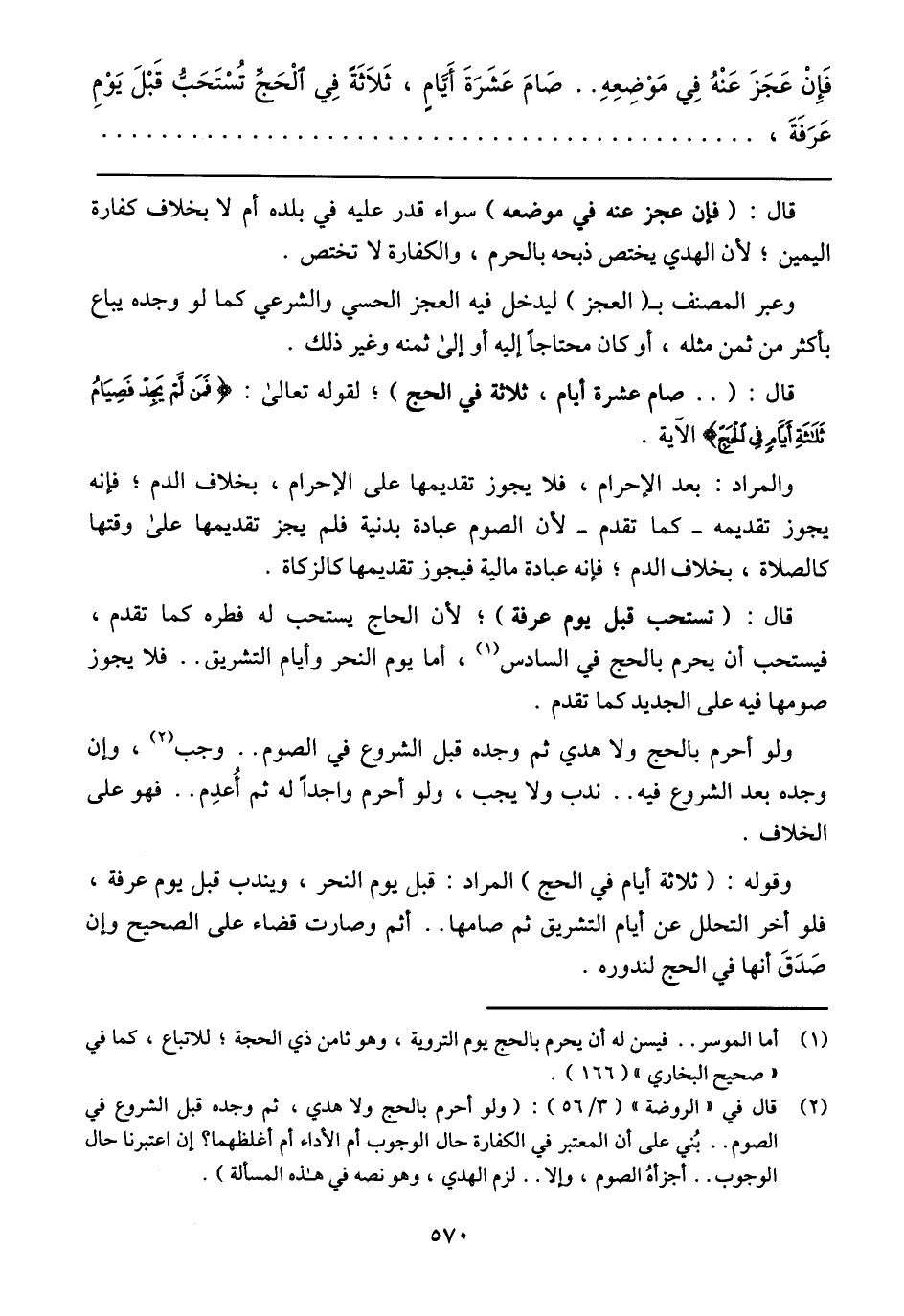 قال: (.. صام عشرة أيام، ثلاثة في الحج)؛ لقوله تعالى: {فَمَن لَّمْ يَجِدْ فَصِيَامُ ثَلاثَةِ أَيَّامٍ فِي الْحَجِّ} الآية.