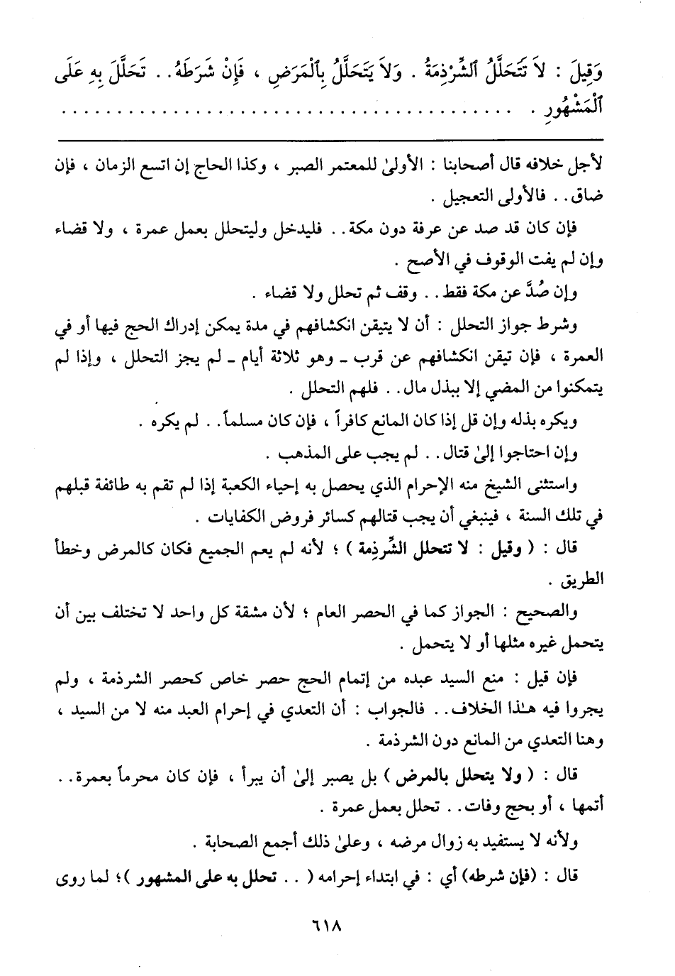 فإن قيل: منع السيد عبده من إتمام الحج حصر خاص كحصر الشرذمة، ولم يجروا فيه هذا الخلاف .. فالجواب: أن التعدي في إحرام العبد منه لا من السيد، وهنا التعدي من المانع دون الشرذمة.
