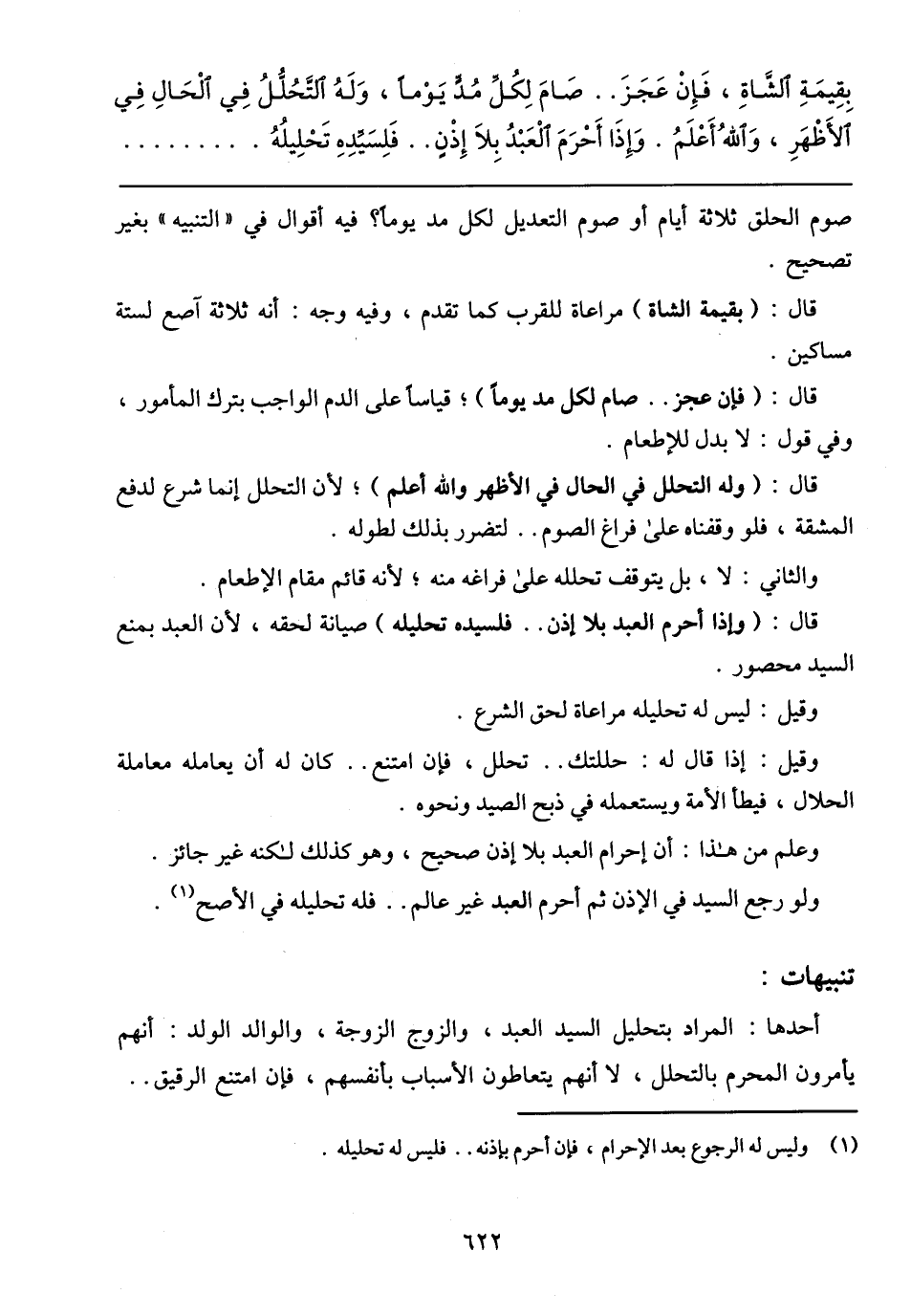 صوم الحلق ثلاثة أيام او صوم التعديل لكل مد يوما؟ فيه أقوال في (التنبيه) بغير تصحيح.