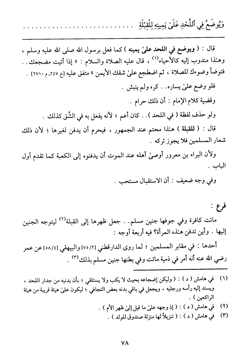 ماتت كافرة وفي جوفها جنين مسلم ... جعل ظهرها إلى القبلة ليتوجه الجنين إليها. وأين تدفن هذة المرأة؟ فيه أربعة أوجه:
