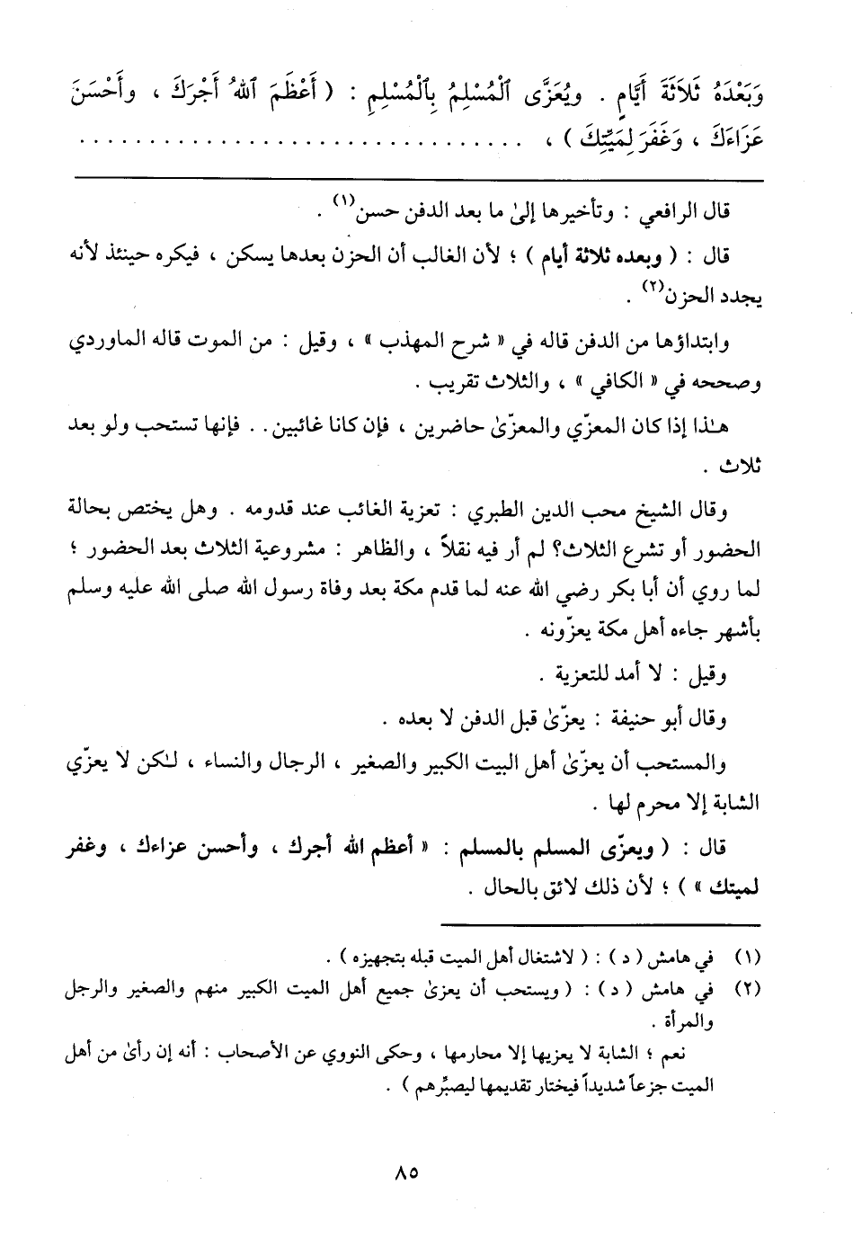 وَبِعَدّهُ ثَلاثَة أَيّام. وَيَعْزِي المُسَلَّم بِالمُسَلَّم: (أَعْظَمَ اللّاه أَجْركِ، وَأَحْسَنَ عَزاءكِ، وَغَفَرَ لَمَيِّتكَ