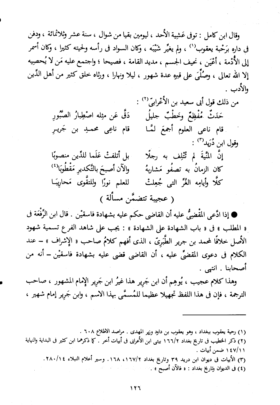 (قَامَ ناعى الْعُلُوم أجمع لما ... قَامَ ناعى مُحَمَّد بن جرير)