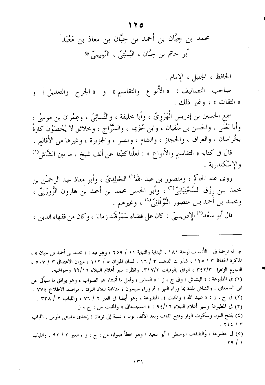 125 - مُحَمَّد بن حبَان بن أَحْمد بن حبَان بن معَاذ بن معبد أَبُو حَاتِم بن حبَان البستى التميمى