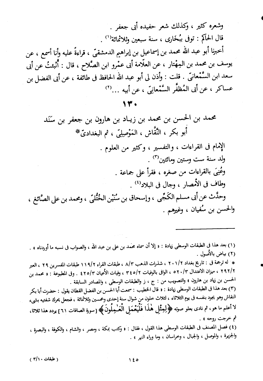 130 - مُحَمَّد بن الْحسن بن مُحَمَّد بن زِيَاد بن هَارُون بن جَعْفَر بن سَنَد أَبُو بكر النقاش الموصلى ثمَّ البغدادى