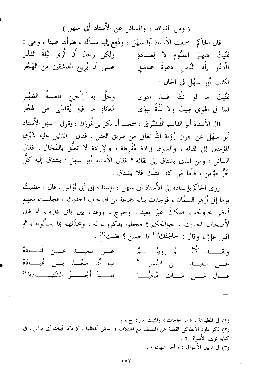 وَمن الْفَوَائِد والمسائل عَن الْأُسْتَاذ أَبى سهل