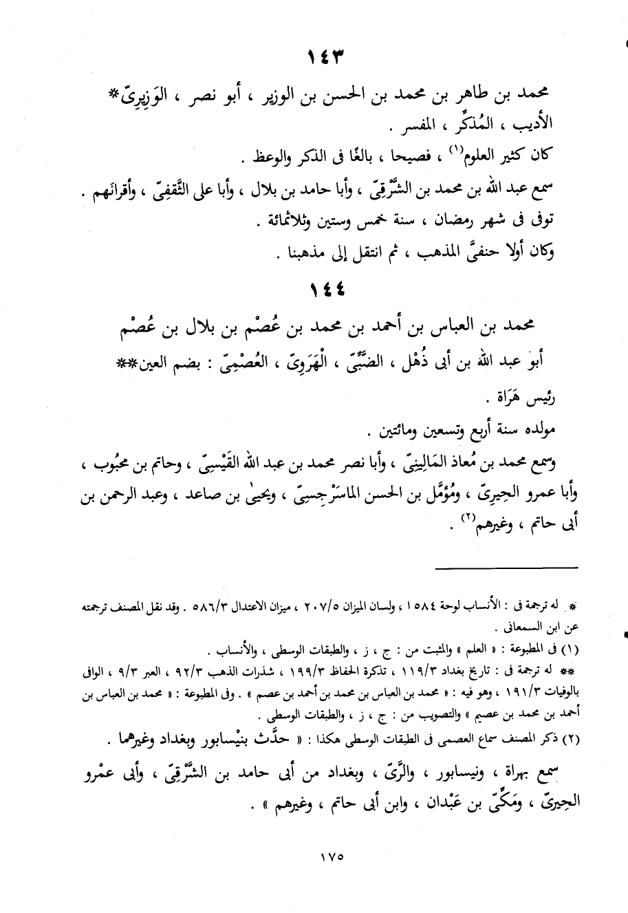 143 - مُحَمَّد بن طَاهِر بن مُحَمَّد بن الْحسن بن الْوَزير أَبُو نصر الوزيرى