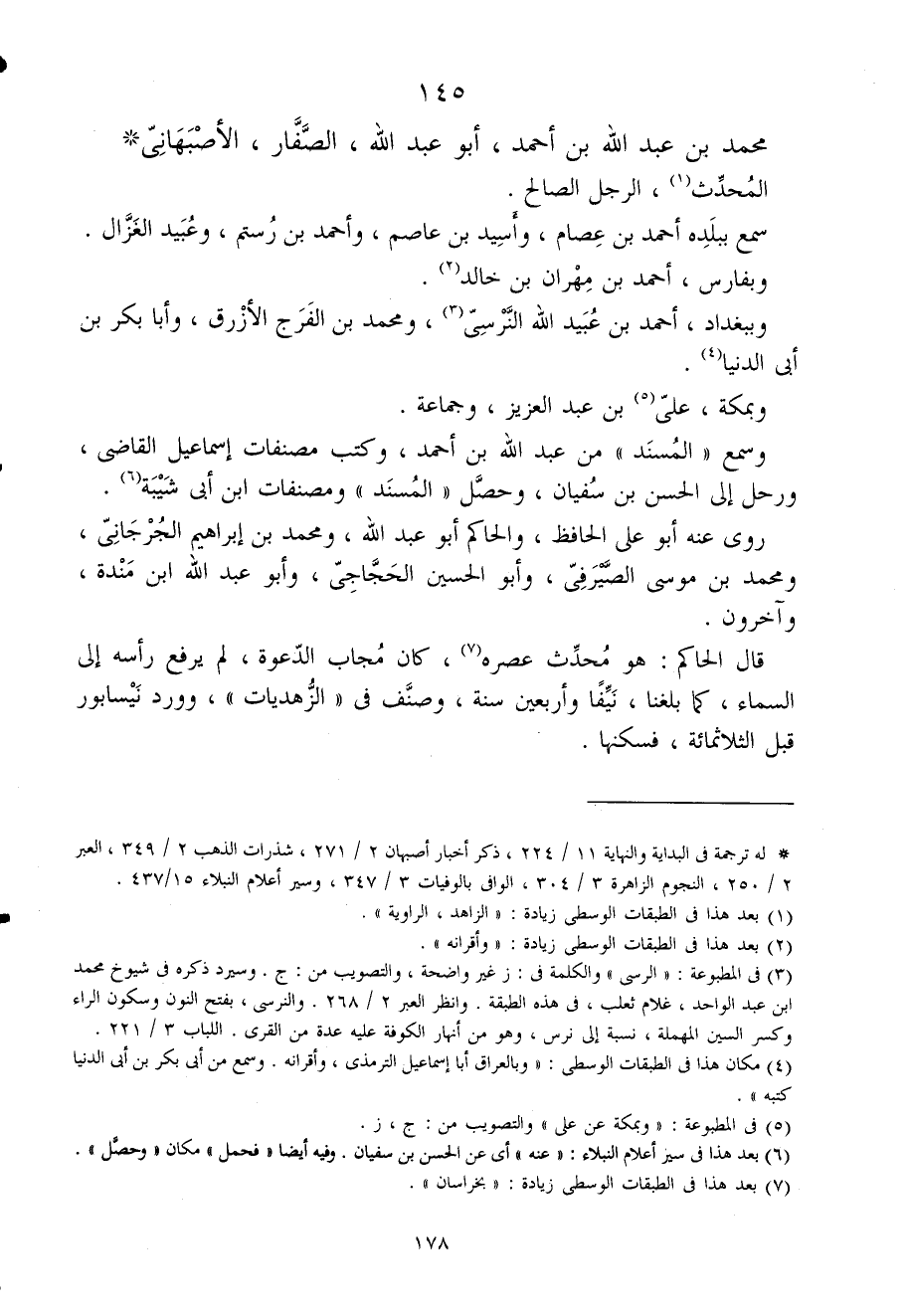 145 - مُحَمَّد بن عبد الله بن أَحْمد أَبُو عبد الله الصفار الأصبهانى الْمُحدث الرجل الصَّالح