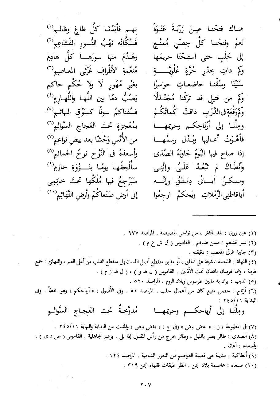 (هُنَاكَ فتحنا عين زربة عنْوَة ... بهم فأبدنا كل طاغ وظالم)