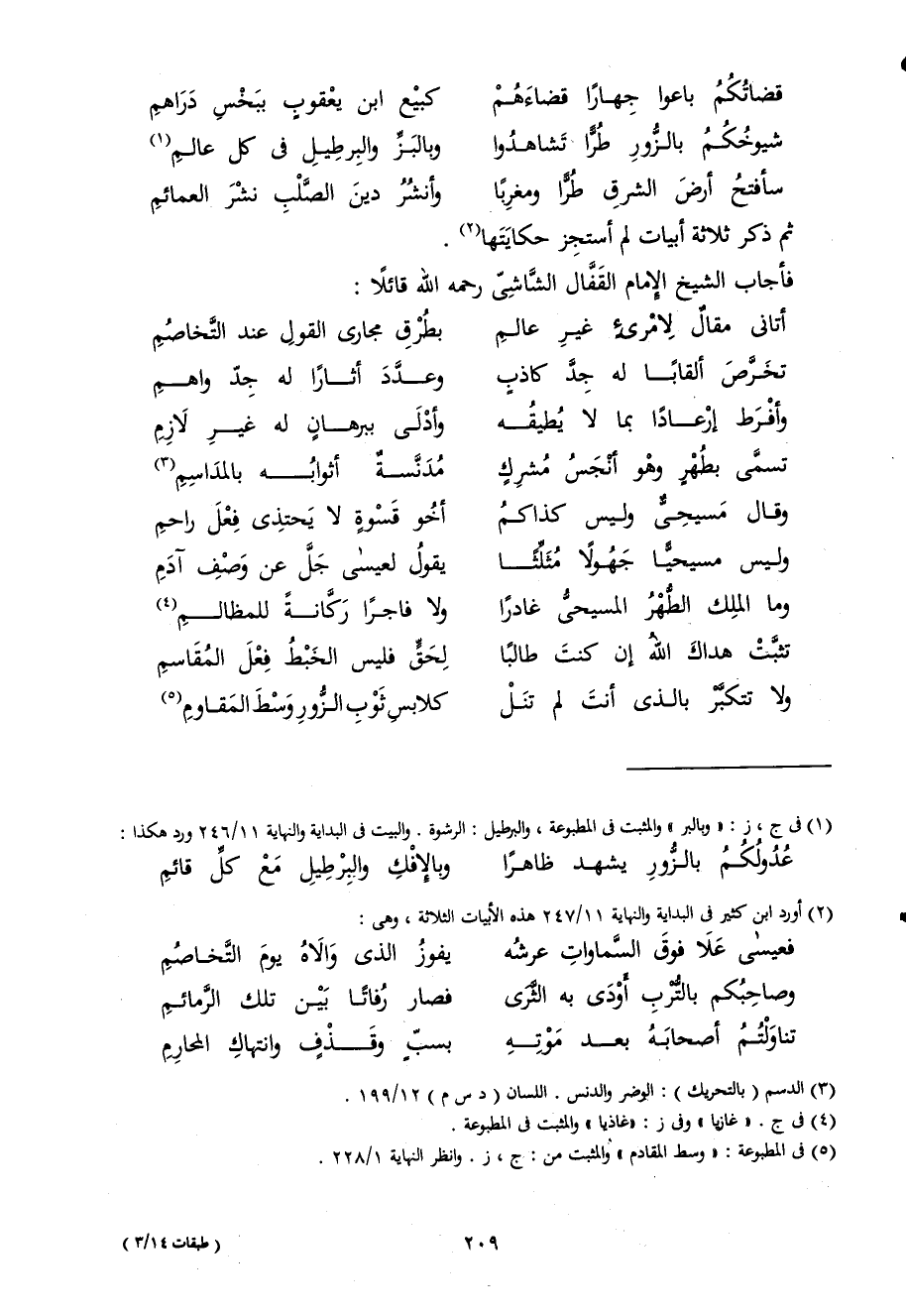 (وَلَيْسَ مسيحيا جهولا مثلثا ... يَقُول لعيسى جلّ عَن وصف آدم)
