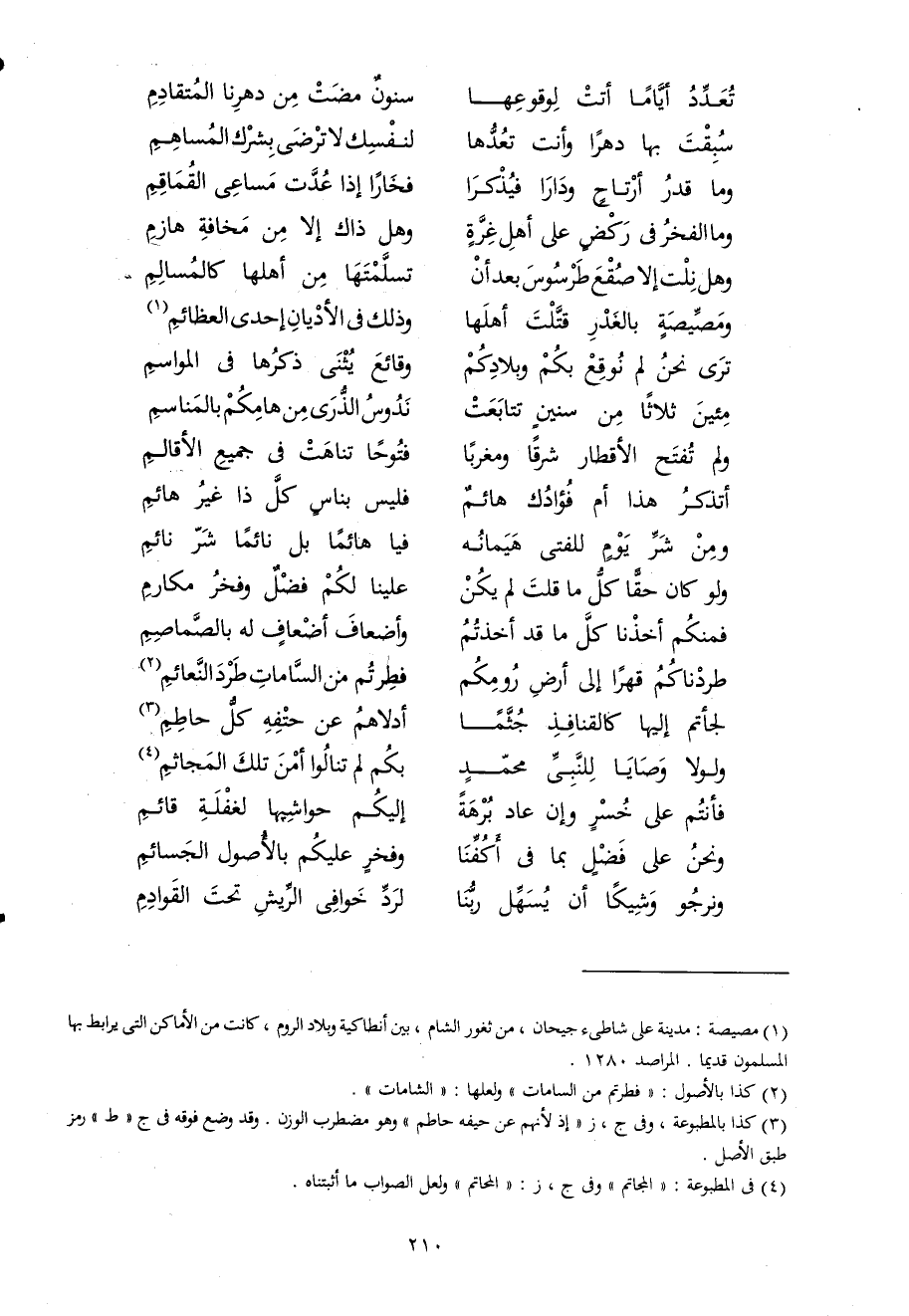 (ومصيصة بالغدر قتلت أَهلهَا ... وَذَلِكَ فى الْأَدْيَان إِحْدَى العظائم)