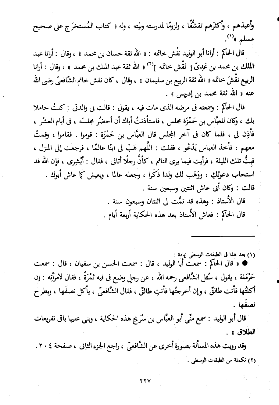قَالَ الْحَاكِم أرانا أَبُو الْوَلِيد نقش خَاتمه الله ثِقَة حسان بن مُحَمَّد وَقَالَ أرانا عبد الْملك بن مُحَمَّد بن عدى نقش خَاتمه الله ثِقَة عبد الْملك بن مُحَمَّد وَقَالَ أرانا الرّبيع نقش خَاتمه الله ثِقَة الرّبيع بن سُلَيْمَان وَقَالَ كَانَ نقش خَاتم الشافعى رضى الله عَنهُ الله ثِقَة مُحَمَّد بن إِدْرِيس