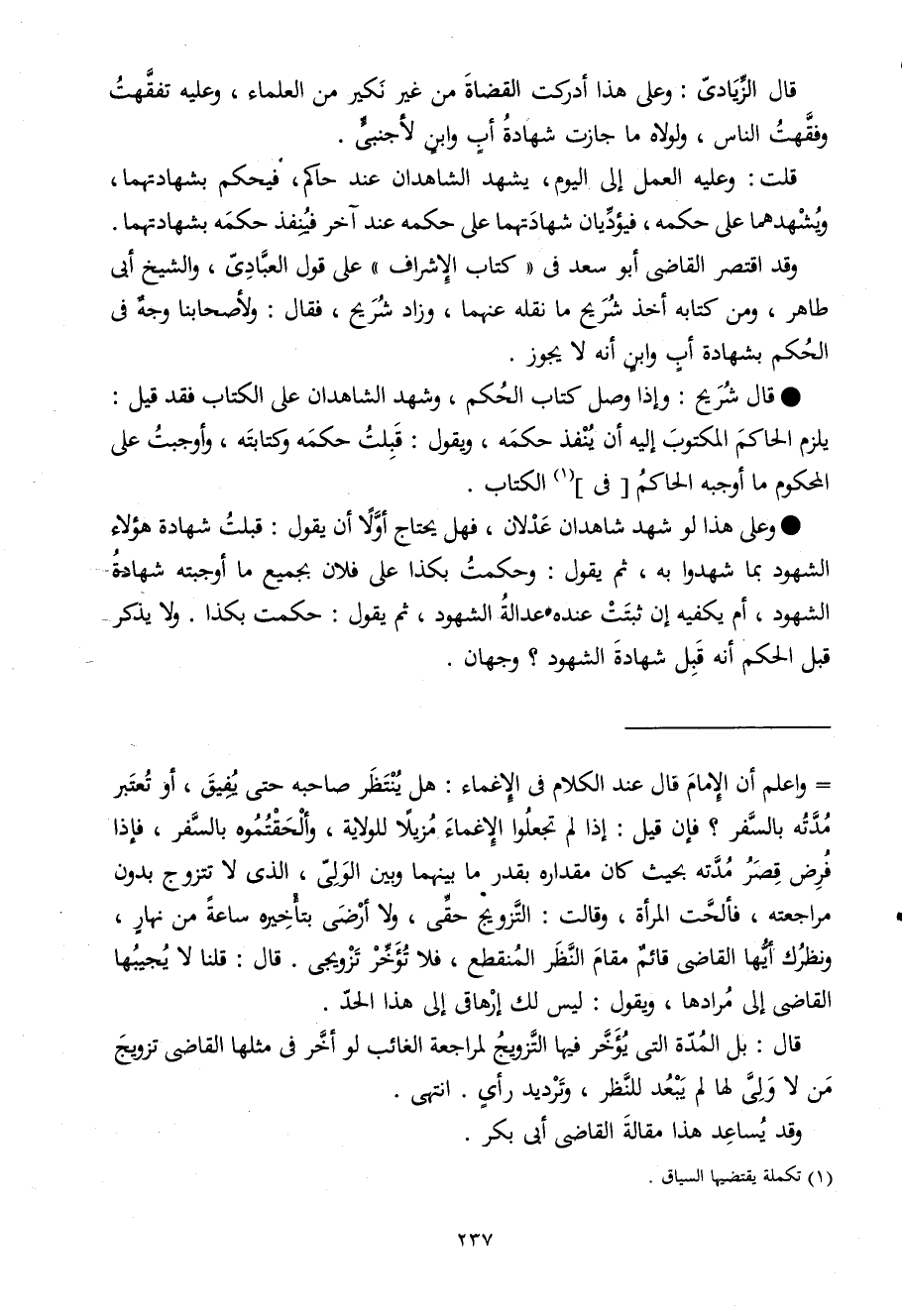 قَالَ الزيادى وعَلى هَذَا أدْركْت الْقُضَاة من غير نَكِير من الْعلمَاء وَعَلِيهِ تفقهت وفقهت النَّاس ولولاه مَا جَازَت شَهَادَة أَب وَابْن لأجنبى