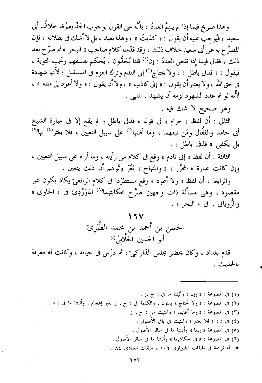 167 - الْحسن بن أَحْمد بن مُحَمَّد الطبرى أَبُو الْحُسَيْن الجلابى