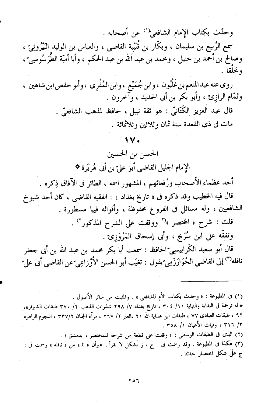 170 - الْحسن بن الْحُسَيْن الإِمَام الْجَلِيل القاضى أَبُو على بن أَبى هُرَيْرَة