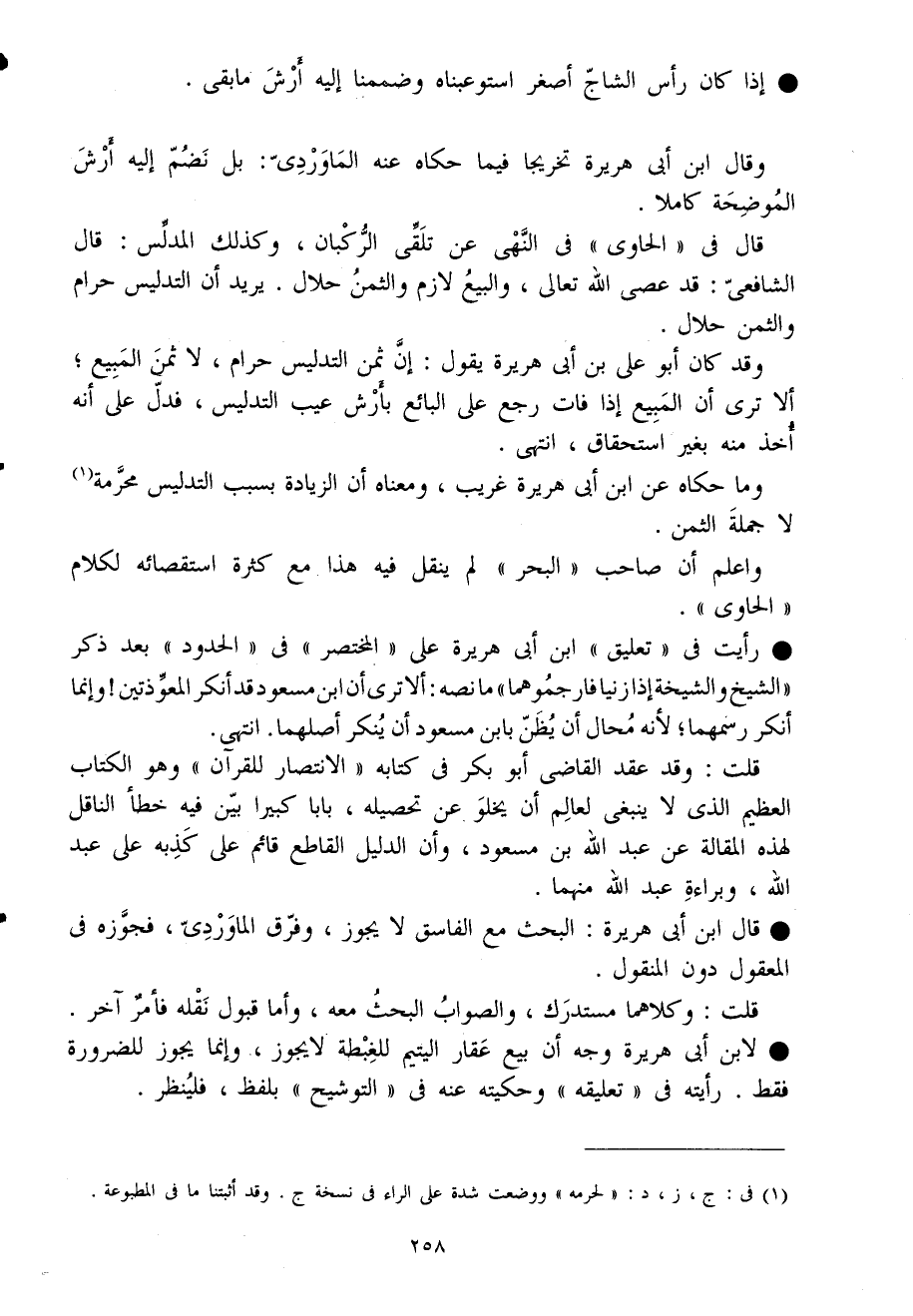 وَاعْلَم أَن صَاحب الْبَحْر لم ينْقل فِيهِ هَذَا مَعَ كَثْرَة اسْتِقْصَائِهِ لكَلَام الحاوى