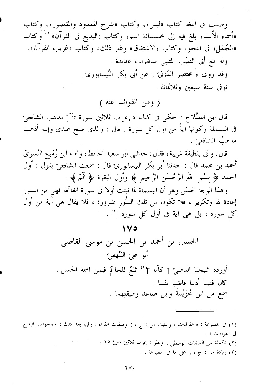 175 - الْحُسَيْن بن أَحْمد بن الْحسن بن مُوسَى القاضى أَبُو على البيهقى