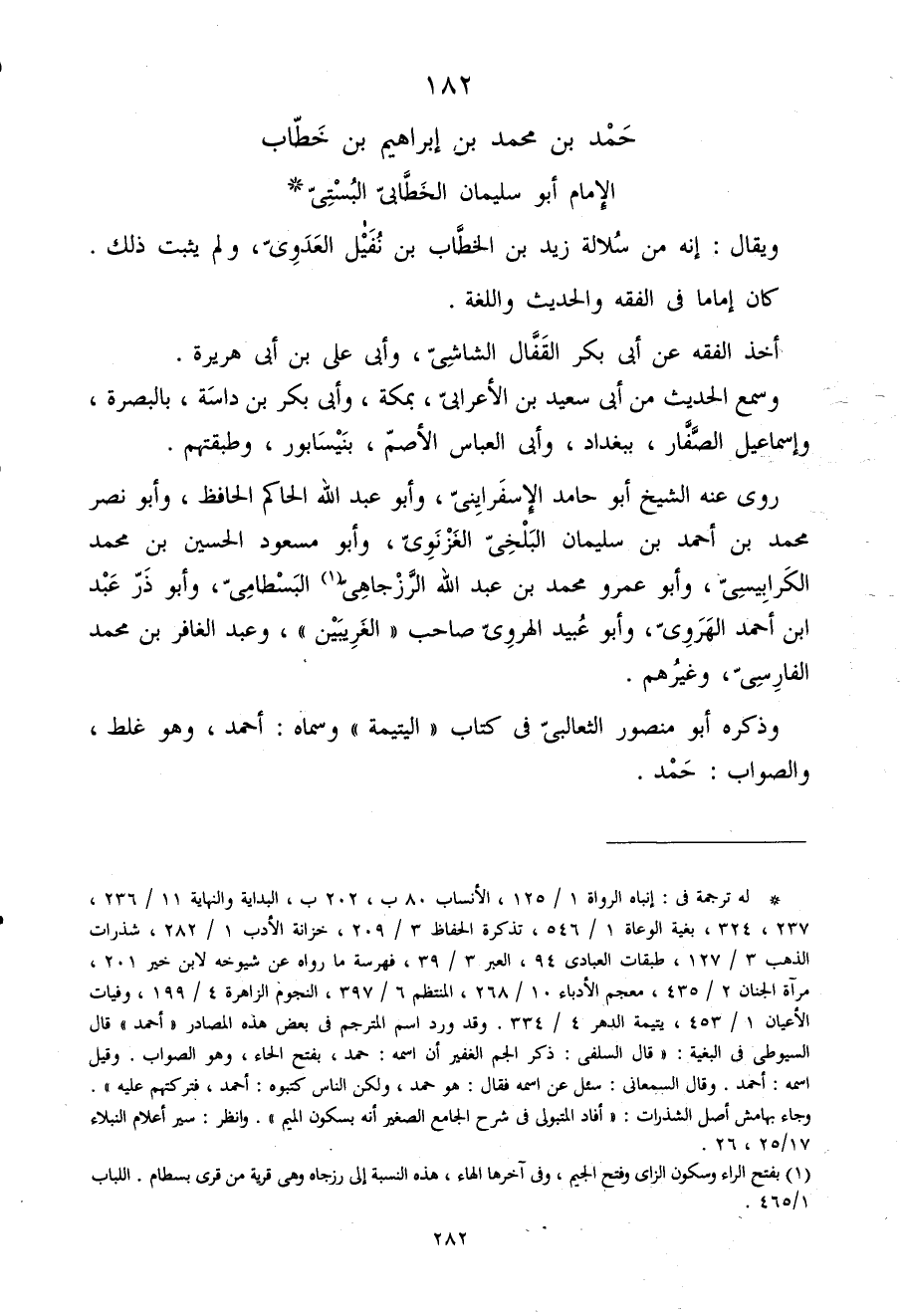 182 - حمد بن مُحَمَّد بن إِبْرَاهِيم بن خطاب الإِمَام أَبُو سُلَيْمَان الخطابى البستى