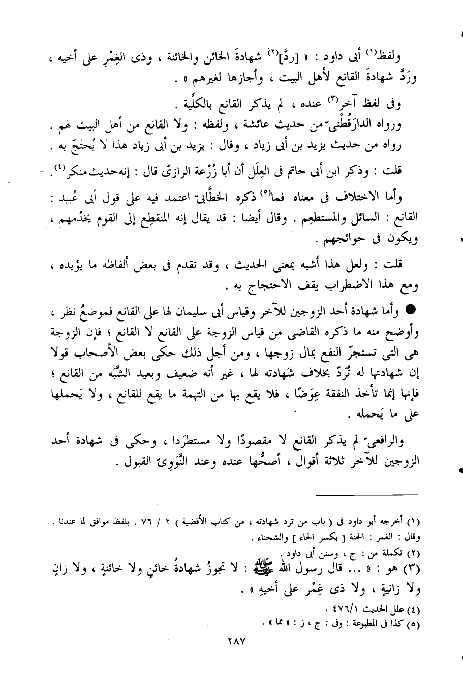 وَلَفظ أَبى دَاوُد رد شَهَادَة الخائن والخائنة وذى الْغمر على أَخِيه ورد شَهَادَة القانع لأهل الْبَيْت وأجازها لغَيرهم