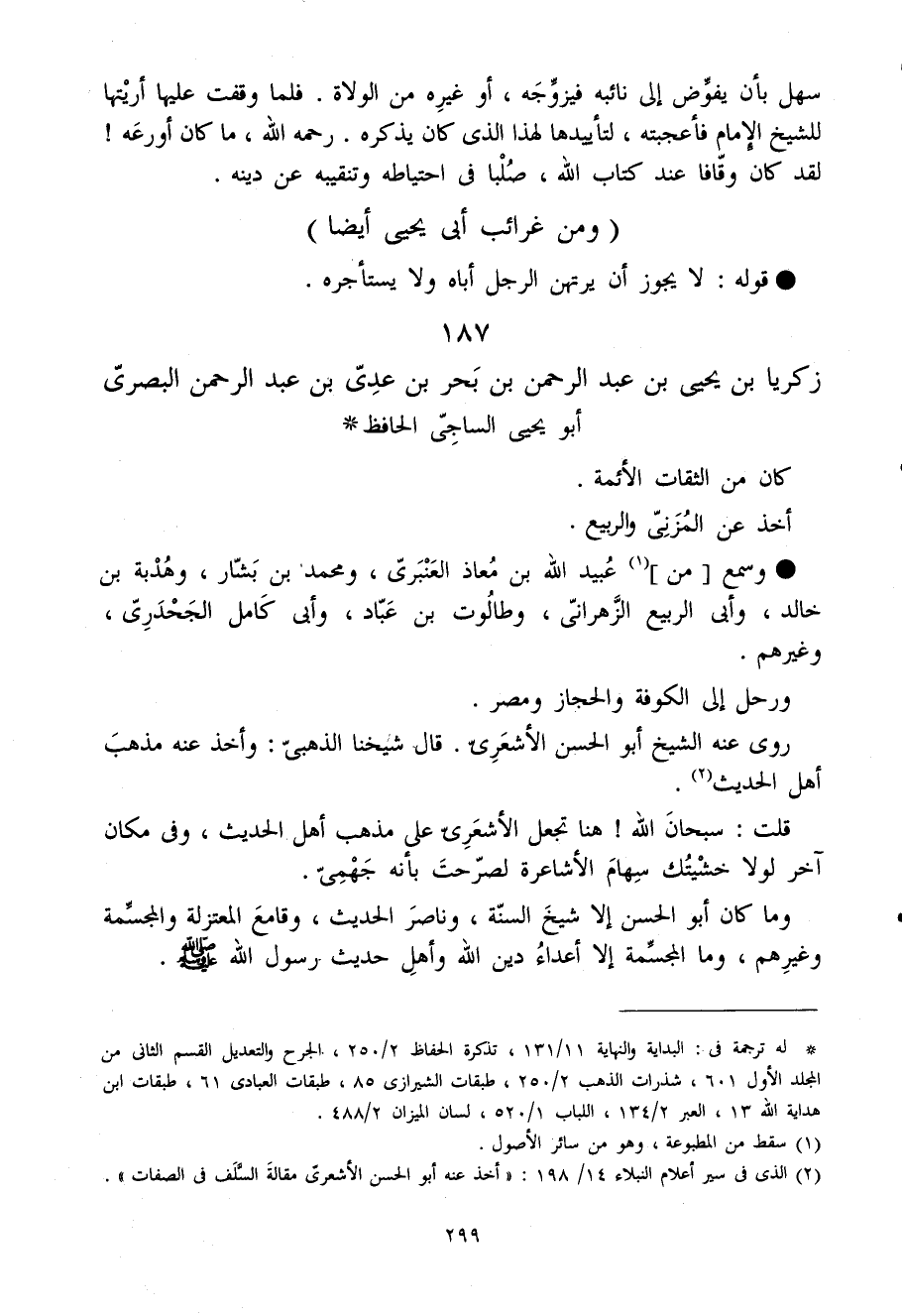 187 - زَكَرِيَّا بن يحيى بن عبد الرَّحْمَن بن بَحر بن عدى بن عبد الرَّحْمَن البصرى أَبُو يحيى الساجى الْحَافِظ