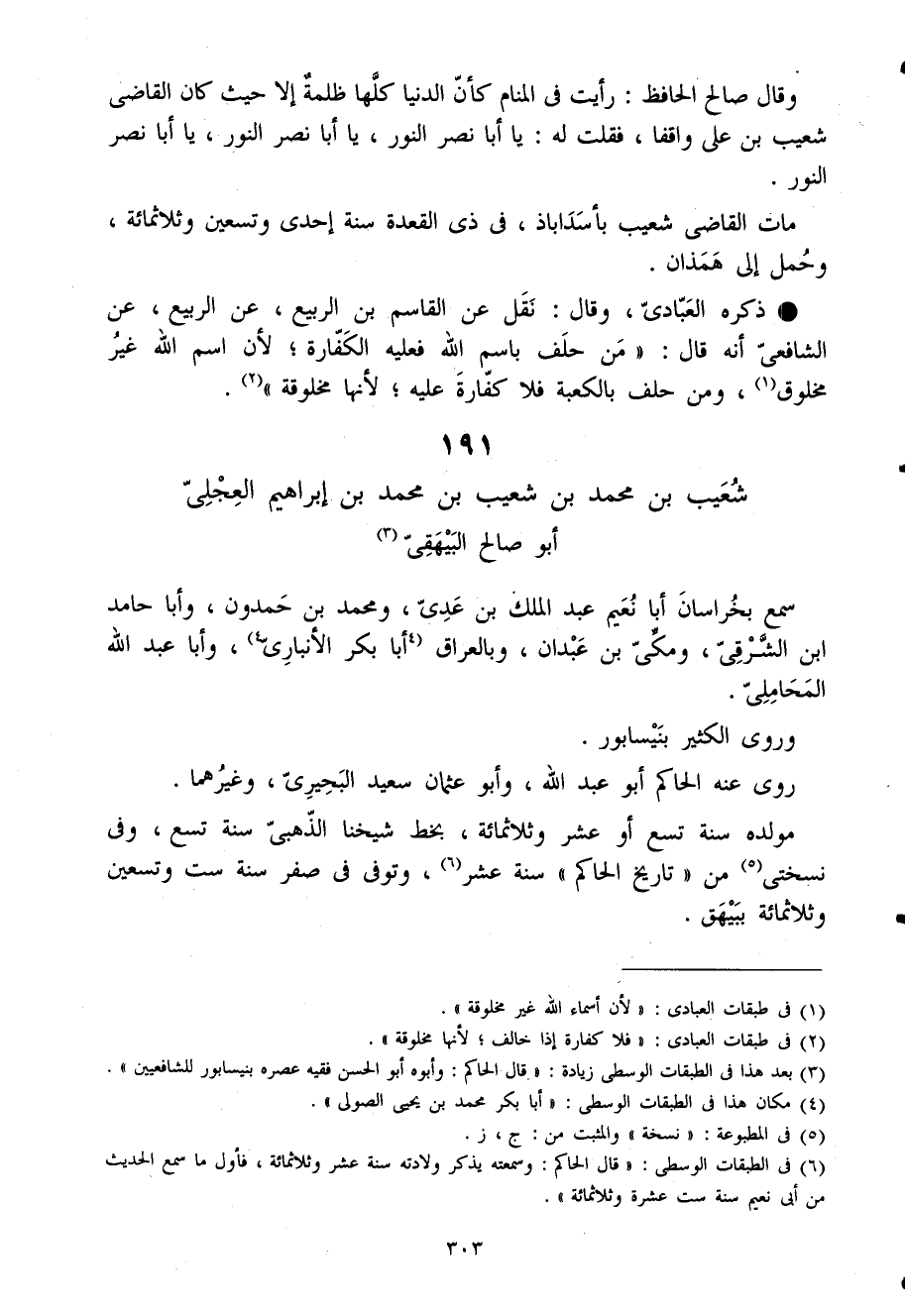 191 - شُعَيْب بن مُحَمَّد بن شُعَيْب بن مُحَمَّد بن إِبْرَاهِيم العجلى أَبُو صَالح البيهقى