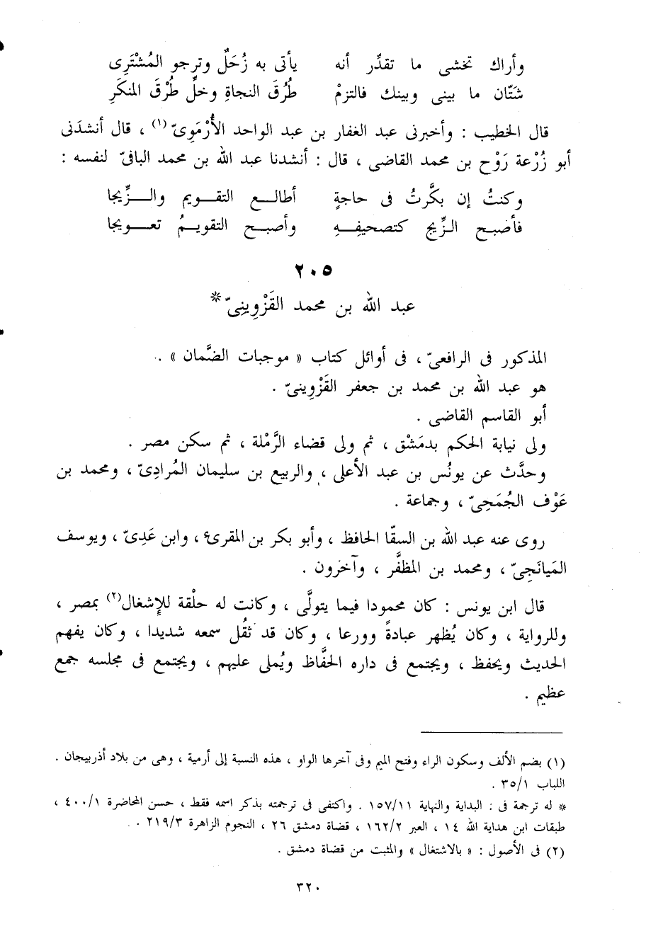 قَالَ الْخَطِيب وأخبرنى عبد الْغفار بن عبد الْوَاحِد الأرموى قَالَ أنشدنى أَبُو زرْعَة روح بن مُحَمَّد القاضى قَالَ أنشدنا عبد الله بن مُحَمَّد البافى لنَفسِهِ