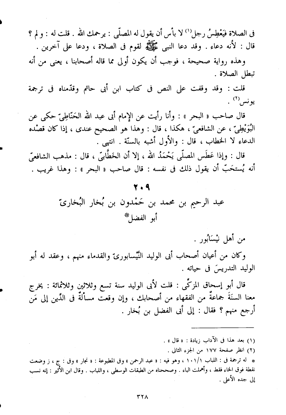 209 - عبد الرَّحِيم بن مُحَمَّد بن حمدون بن بخار البخارى أَبُو الْفضل