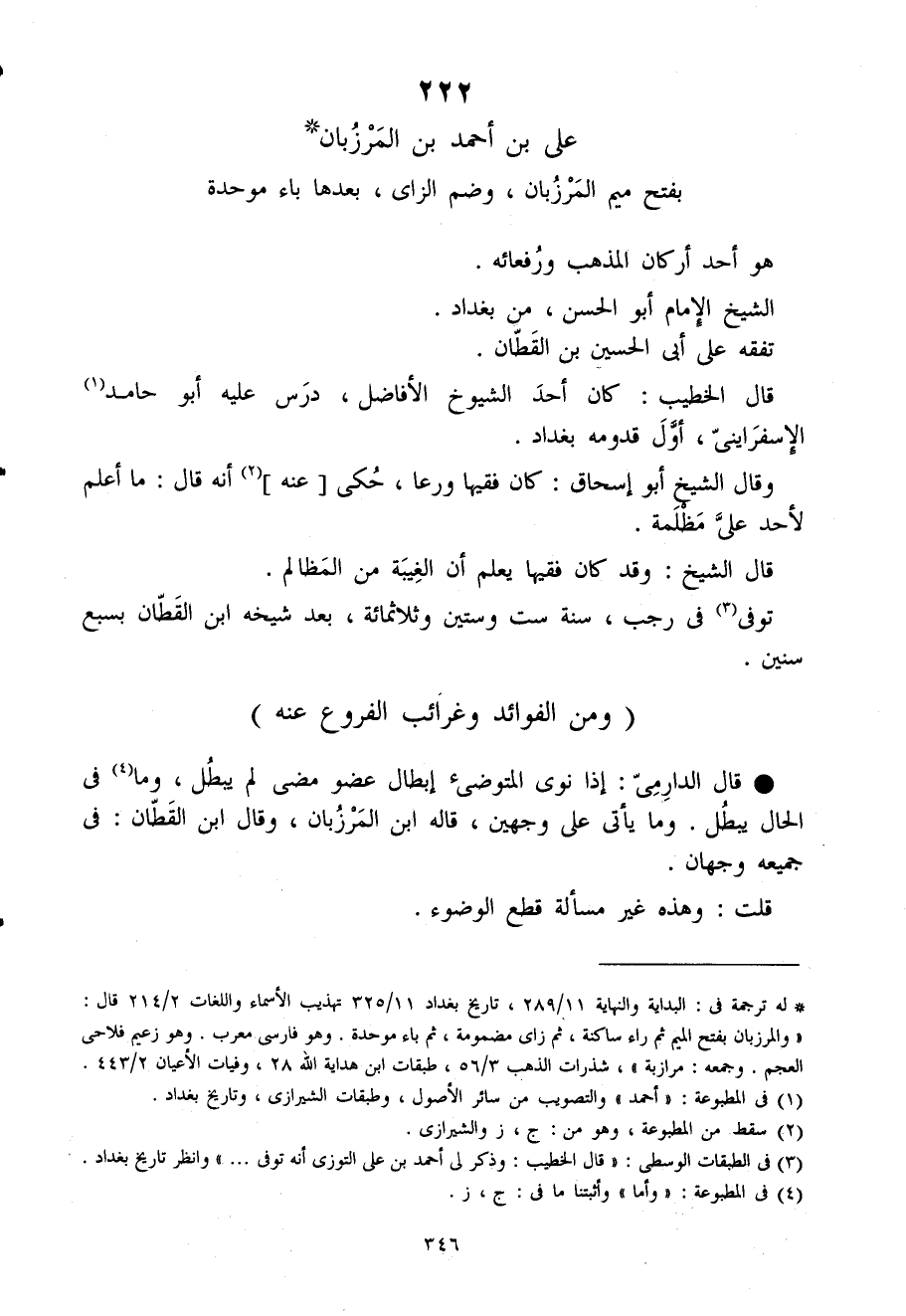 222 - على بن أَحْمد بن الْمَرْزُبَان بِفَتْح مِيم الْمَرْزُبَان وَضم الزاى بعْدهَا بَاء مُوَحدَة