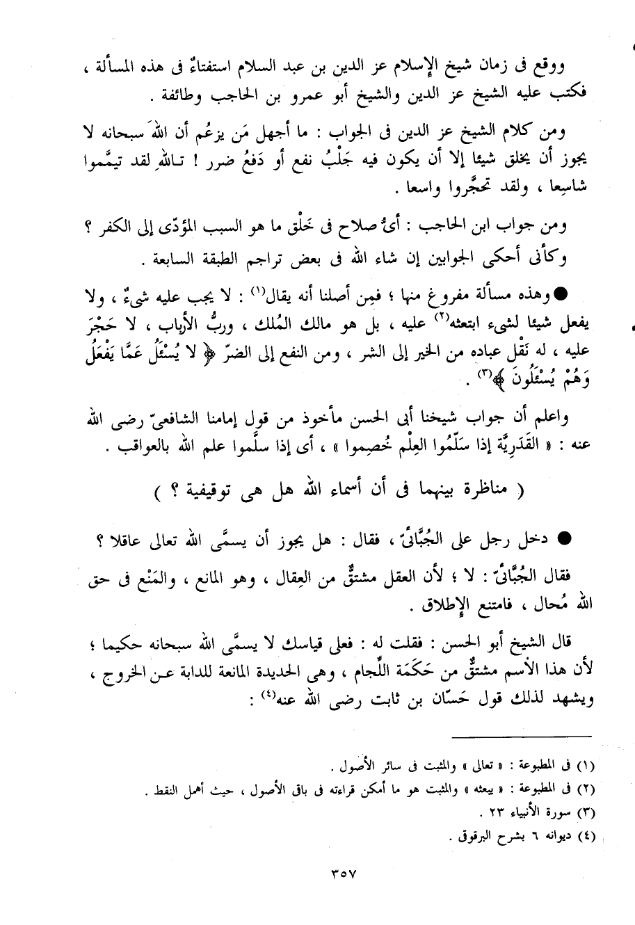 مناظرة بَينهمَا فى أَن أَسمَاء الله هَل هى توقيفية
