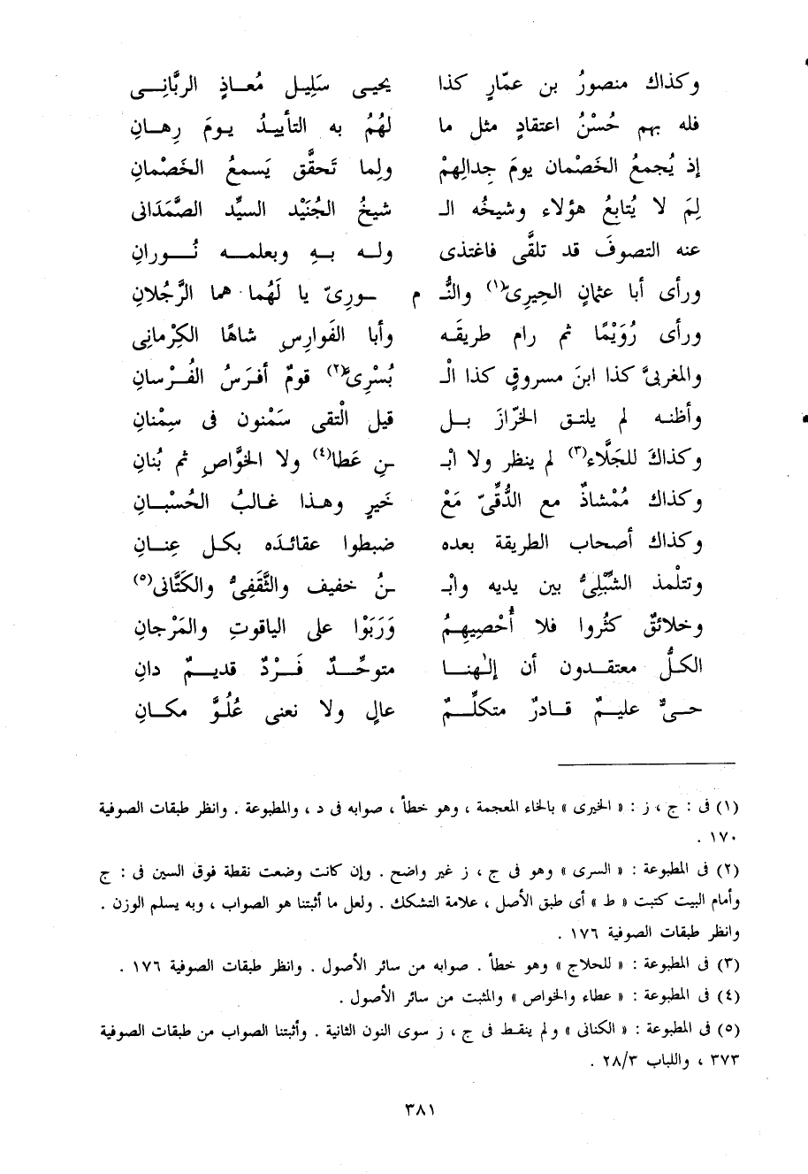 (وَأَظنهُ لم يلتق الخراز بل ... قيل التقى سمنون فى سمنان)