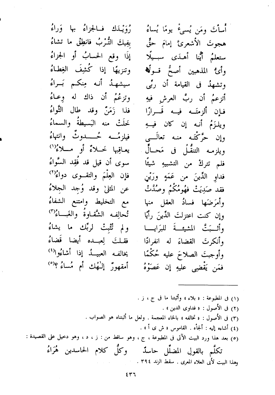 (وَأثبت الْمَشِيئَة للبرايا ... وَلم تثبت لِرَبِّك مَا يَشَاء)