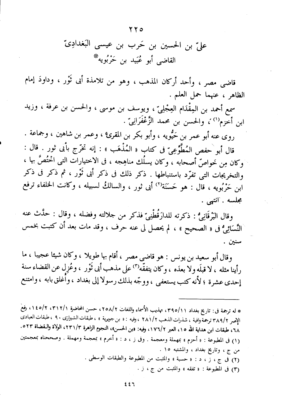 225 - على بن الْحُسَيْن بن حَرْب بن عِيسَى البغدادى القاضى أَبُو عبيد بن حربويه