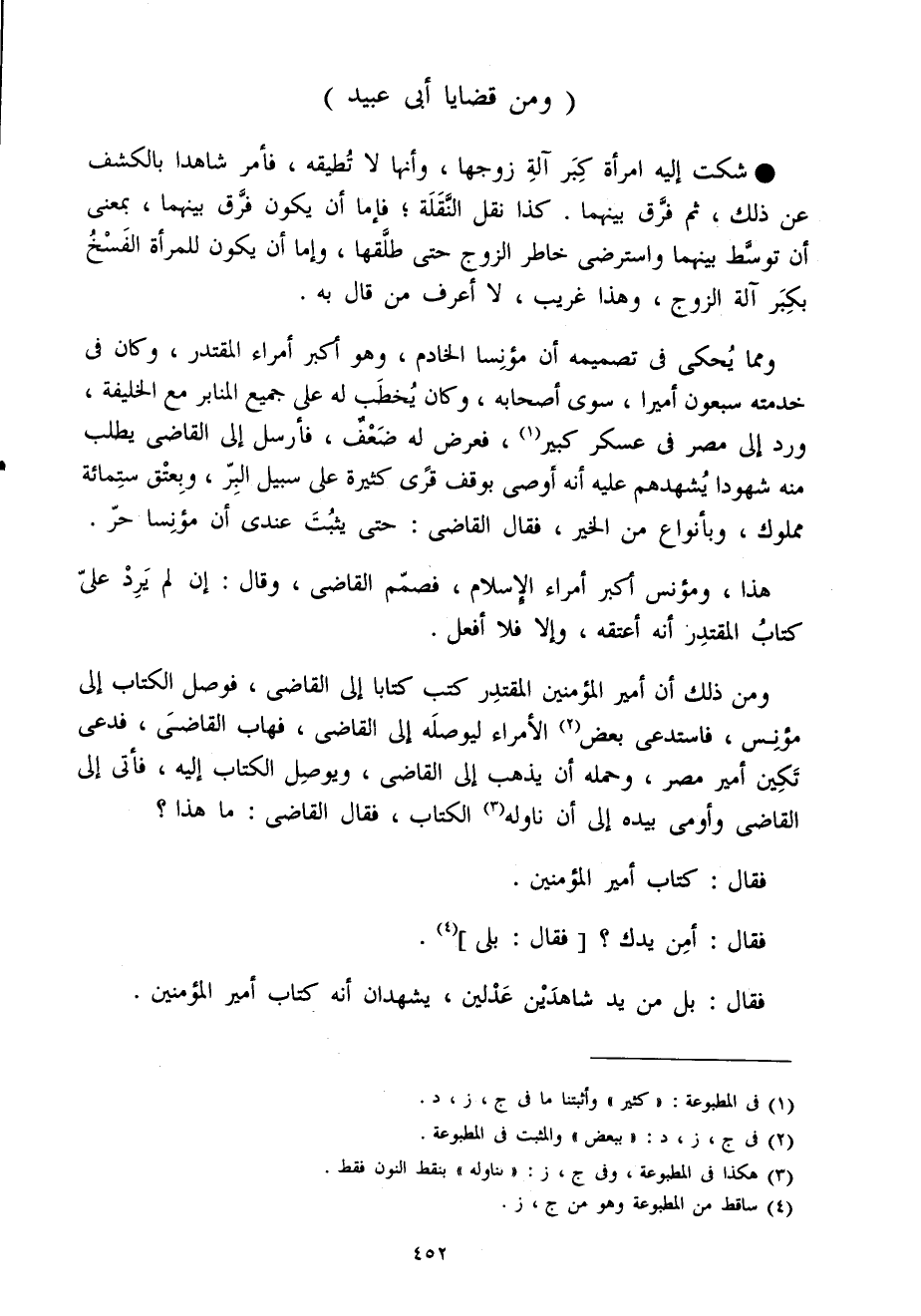 هَذَا ومؤنس أكبر أُمَرَاء الْإِسْلَام فصمم القاضى وَقَالَ إِن لم يرد على كتاب المقتدر أَنه أعْتقهُ وَإِلَّا فَلَا أفعل