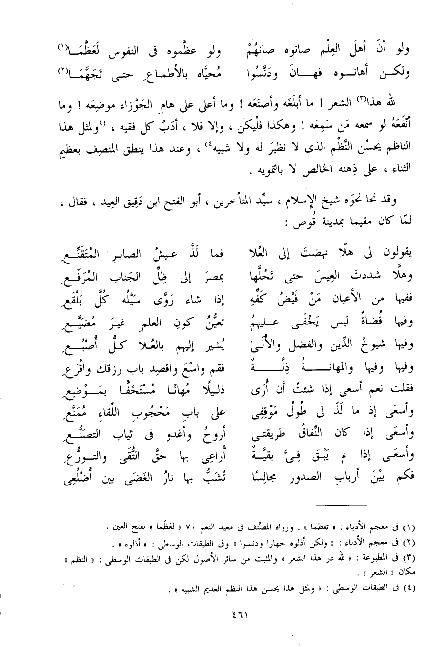 وَقد نحا نَحوه شيخ الْإِسْلَام سيد الْمُتَأَخِّرين أَبُو الْفَتْح ابْن دَقِيق الْعِيد فَقَالَ لما كَانَ مُقيما بِمَدِينَة قوص