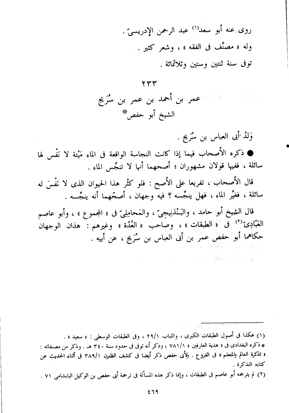 233 - عمر بن أَحْمد بن عمر بن سُرَيج الشَّيْخ أَبُو حَفْص
