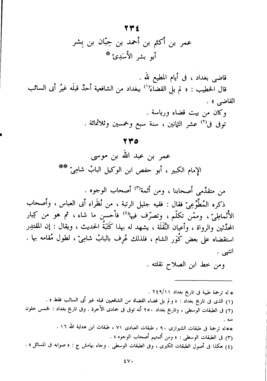 235 - عمر بن عبد الله بن مُوسَى الإِمَام الْكَبِير أَبُو حَفْص ابْن الْوَكِيل الْبَاب شامى