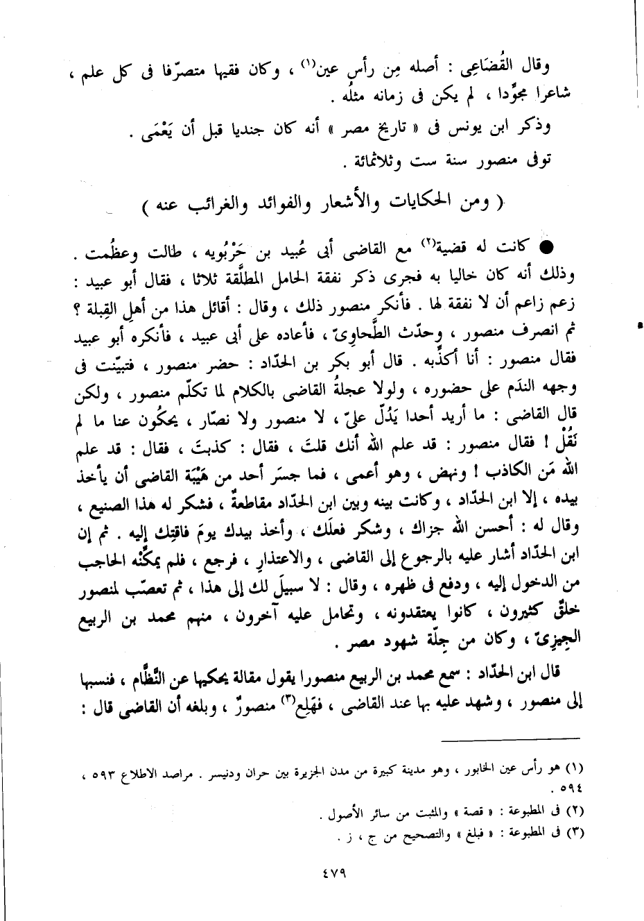 ثمَّ إِن ابْن الْحداد أَشَارَ عَلَيْهِ بِالرُّجُوعِ إِلَى القاضى والاعتذار فَرجع فَلم يُمكنهُ الْحَاجِب من الدُّخُول إِلَيْهِ وَدفع فى ظَهره وَقَالَ لَا سَبِيل لَك إِلَى هَذَا ثمَّ تعصب لمنصور خلق كَثِيرُونَ كَانُوا يعتقدونه وتحامل عَلَيْهِ آخَرُونَ مِنْهُم مُحَمَّد بن الرّبيع الجيزى وَكَانَ من جلة شُهُود مصر
