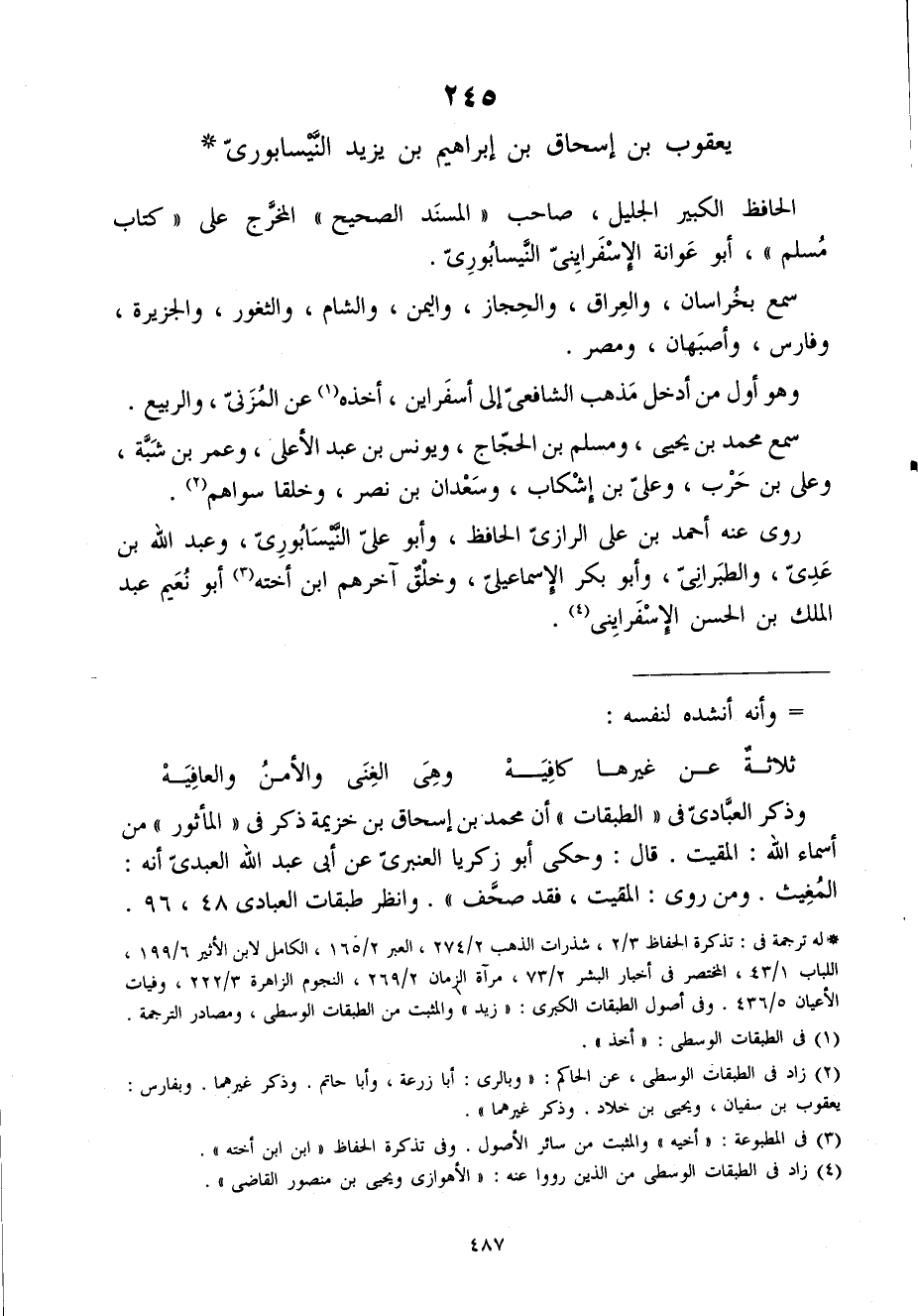 245 - يَعْقُوب بن إِسْحَاق بن إِبْرَاهِيم بن يزِيد النيسابورى