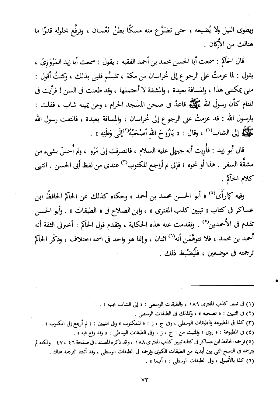 وَقَالَ أَبُو زيد فَأريت أَنه جِبْرِيل عَلَيْهِ السَّلَام فَانْصَرَفت إِلَى مرو وَلم أحس بشئ من مشقة السّفر هَذَا أَو نَحوه فإنى لم أراجع الْمَكْتُوب عندى من لفظ أَبى الْحسن انْتهى كَلَام الْحَاكِم