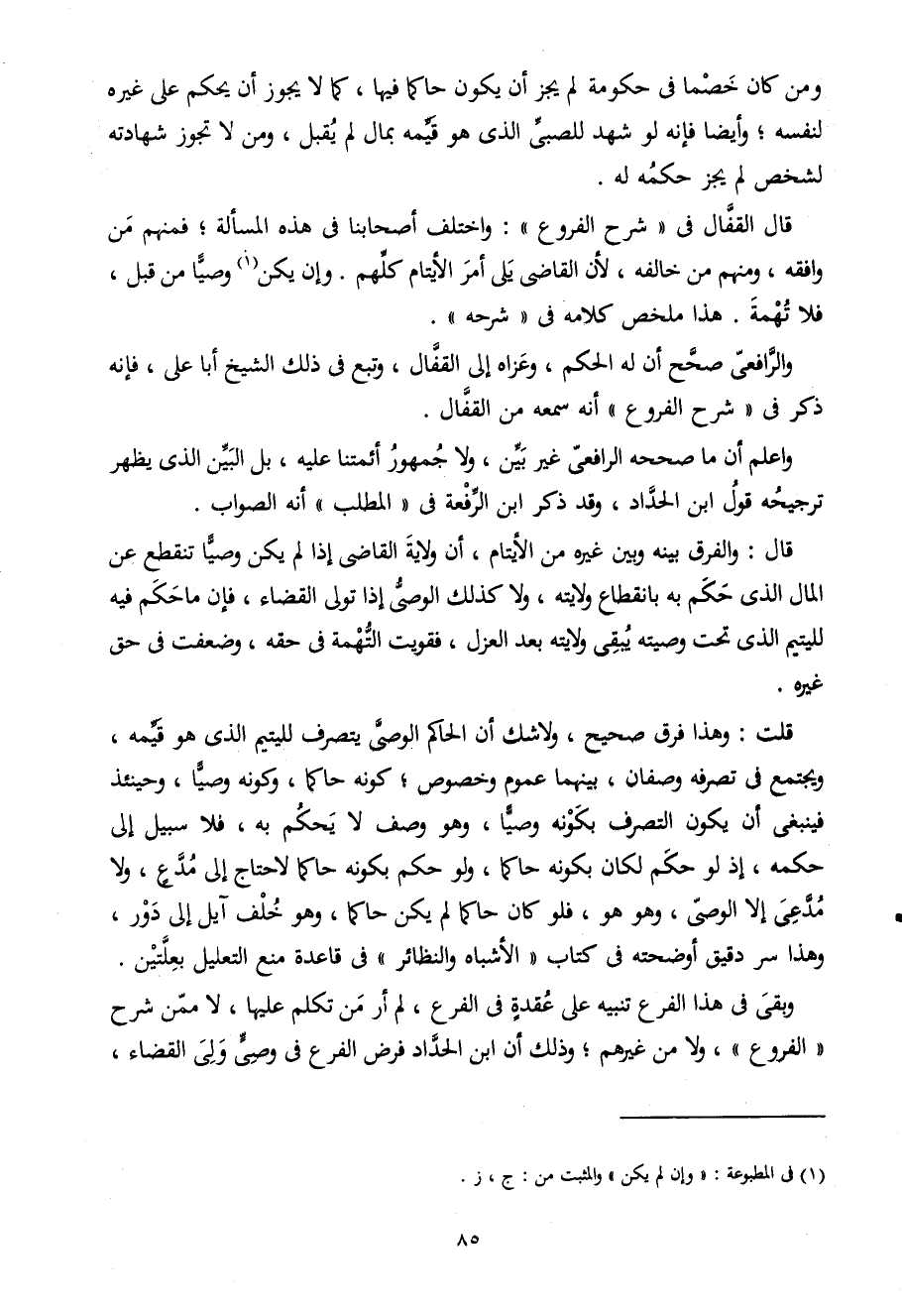 قلت وَهَذَا فرق صَحِيح وَلَا شكّ أَن الْحَاكِم الوصى يتَصَرَّف للْيَتِيم الذى هُوَ قيمه ويجتمع فى تصرفه وصفان بَينهمَا عُمُوم وخصوص كَونه حَاكما وَكَونه وَصِيّا وَحِينَئِذٍ فينبغى أَن يكون التَّصَرُّف بِكَوْنِهِ وَصِيّا وَهُوَ وصف لَا يحكم بِهِ فَلَا سَبِيل إِلَى حكمه إِذْ لَو حكم لَكَانَ بِكَوْنِهِ حَاكما وَلَو حكم بِكَوْنِهِ حَاكما لاحتاج إِلَى مُدع وَلَا مدعى إِلَّا الوصى وَهُوَ هُوَ فَلَو كَانَ حَاكما لم يكن حَاكما وَهُوَ خلف آيل إِلَى دور وَهَذَا سر دَقِيق أوضحته فى كتاب الْأَشْبَاه والنظائر فى قَاعِدَة منع التَّعْلِيل بعلتين