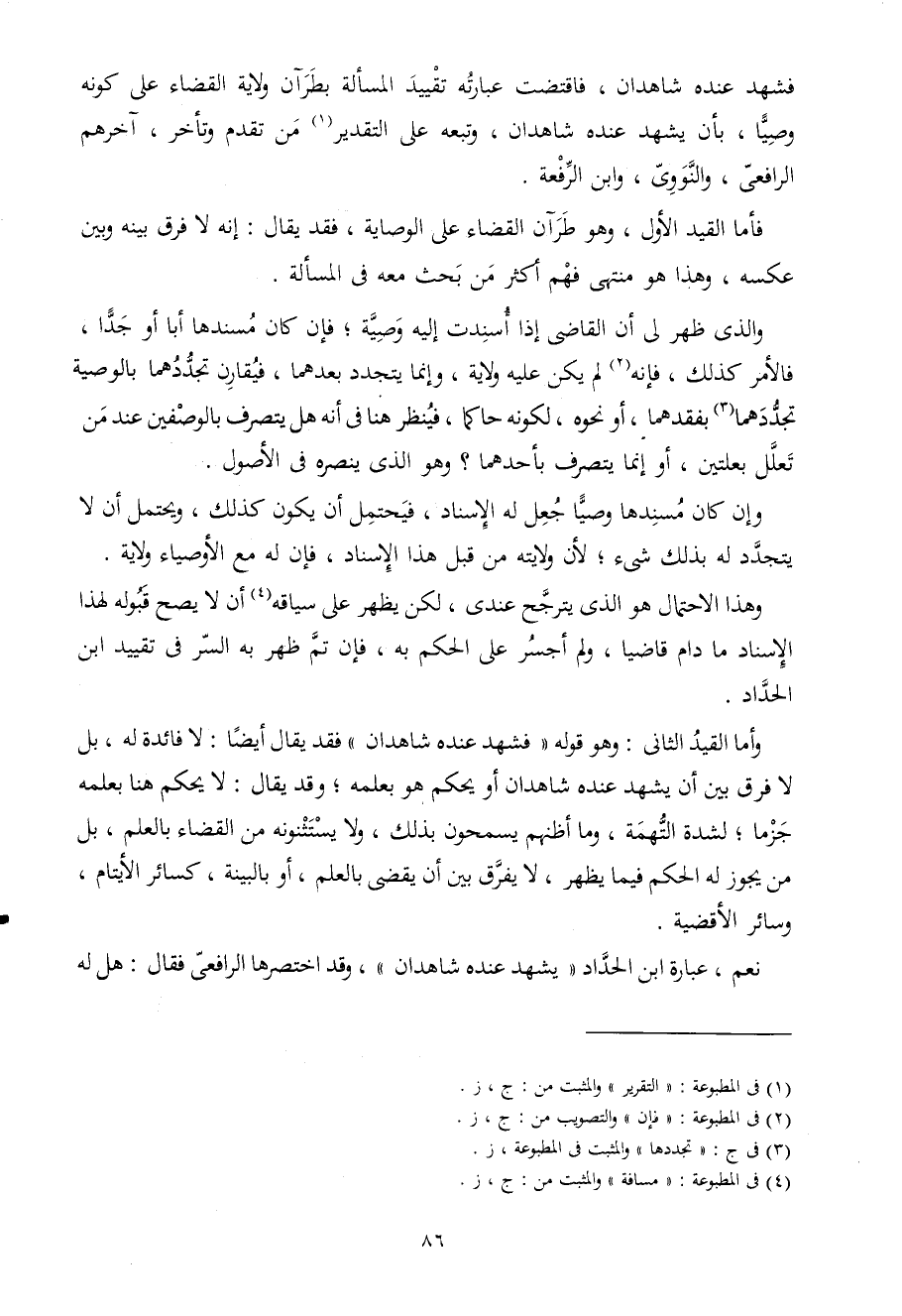 وَهَذَا الإحتمال هُوَ الذى يتَرَجَّح عندى لَكِن يظْهر على سِيَاقه أَن لَا يَصح قبُوله لهَذَا الْإِسْنَاد مَا دَامَ قَاضِيا وَلم أجسر على الحكم بِهِ فَإِن تمّ ظهر بِهِ السِّرّ فى تَقْيِيد ابْن الْحداد