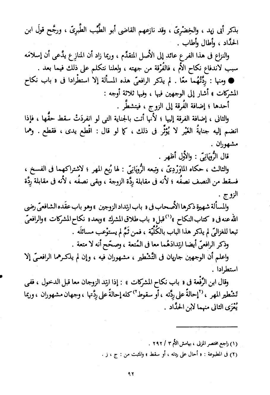 بِذكر أَبى زيد والخضرى وَقد نازعهم القاضى أَبُو الطّيب الطبرى وَرجح قَول ابْن الْحداد وَأطَال وأطاب