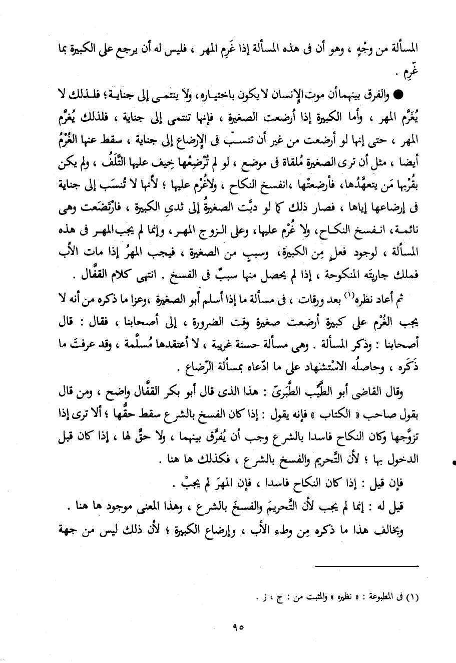 وَقَالَ القاضى أَبُو الطّيب الطبرى هَذَا الذى قَالَ أَبُو بكر الْقفال وَاضح وَمن قَالَ بقول صَاحب الْكتاب فَإِنَّهُ يَقُول إِذا كَانَ الْفَسْخ بِالشَّرْعِ سقط حَقّهَا أَلا ترى إِذا تزَوجهَا وَكَانَ النِّكَاح فَاسِدا بِالشَّرْعِ وَجب أَن يفرق بَينهمَا وَلَا حق لَهَا إِذا كَانَ قبل الدُّخُول بهَا لِأَن التَّحْرِيم وَالْفَسْخ بِالشَّرْعِ فَكَذَلِك هَا هُنَا