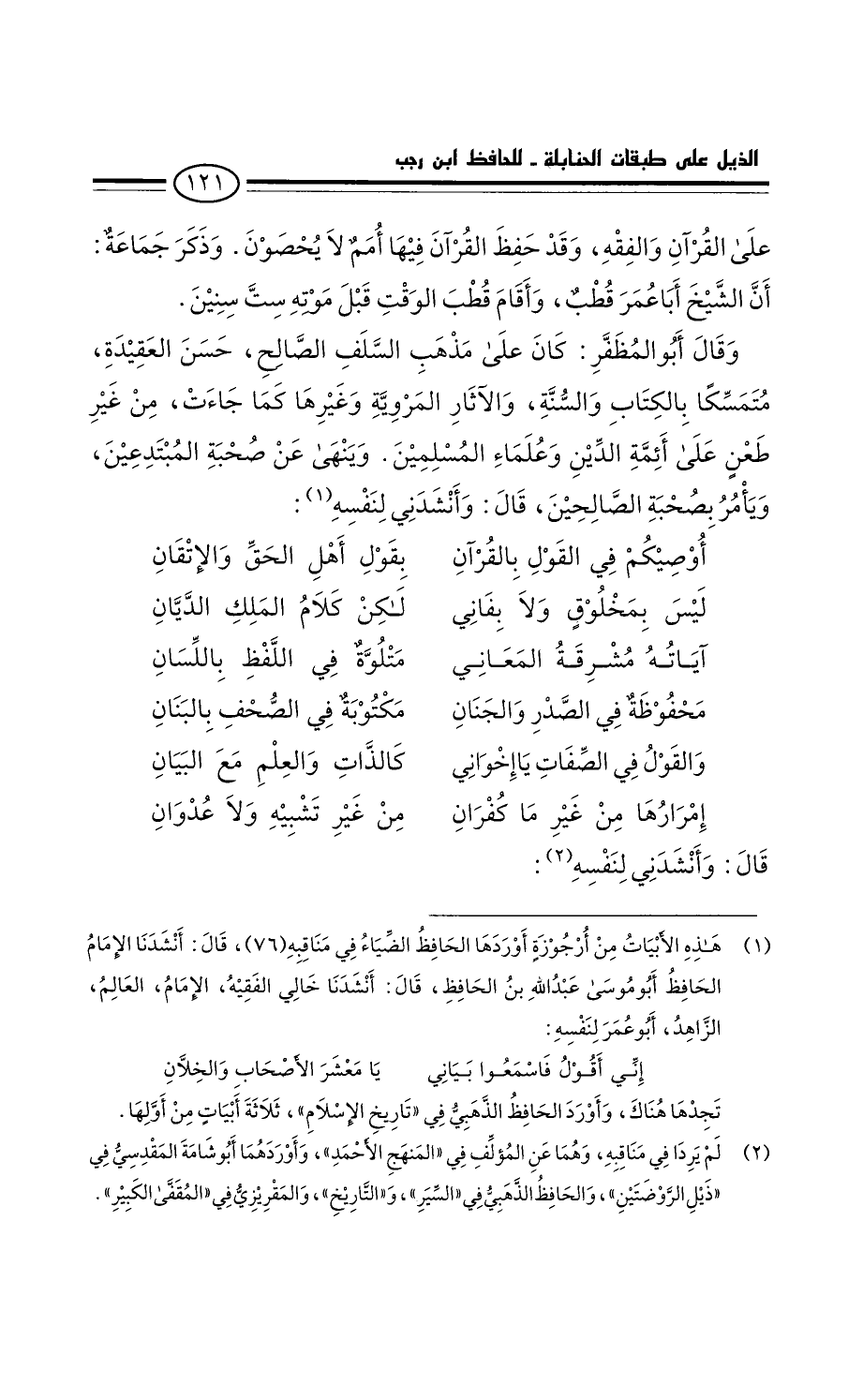 وَقَالَ أَبُو المظفر: كَانَ عَلَى مذهب السلف الصالح، حسن العقيدة، متمسكا بالكتاب والسنة، والآثار المروية وغيرها كَمَا جاءت، من غَيْر طعن عَلَى أئمة الدين وعلماء قَالَ: وأنشدني لنفسه: