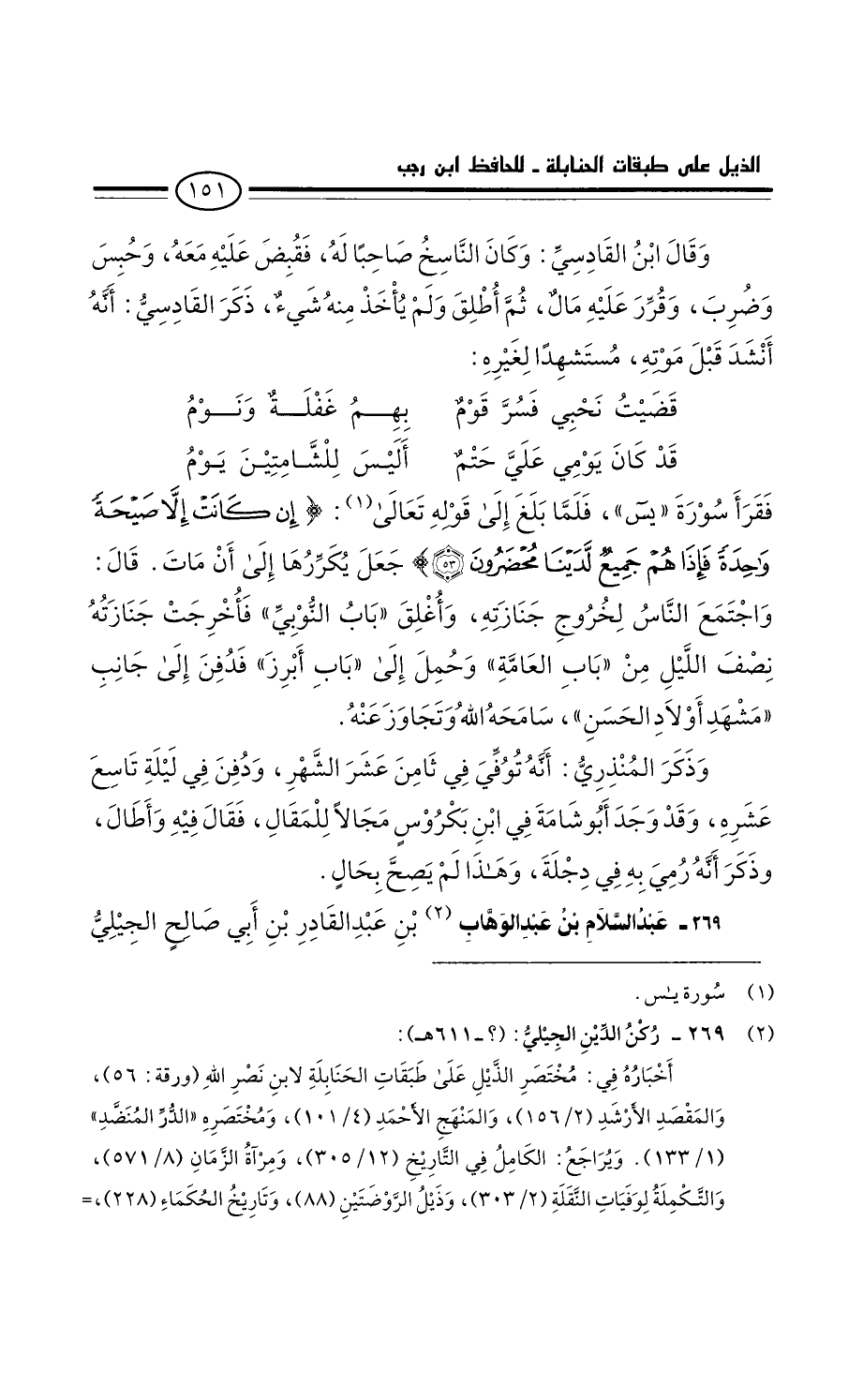 وَقَالَ ابْن القادسي: وَكَانَ الناسخ صاحبا لَهُ، فقبض عَلَيْهِ مَعَهُ، وحبس وضرب، وقرر عَلَيْهِ مال، ثُمَّ أطلق وَلَمْ يأخذ منه شَيْء.