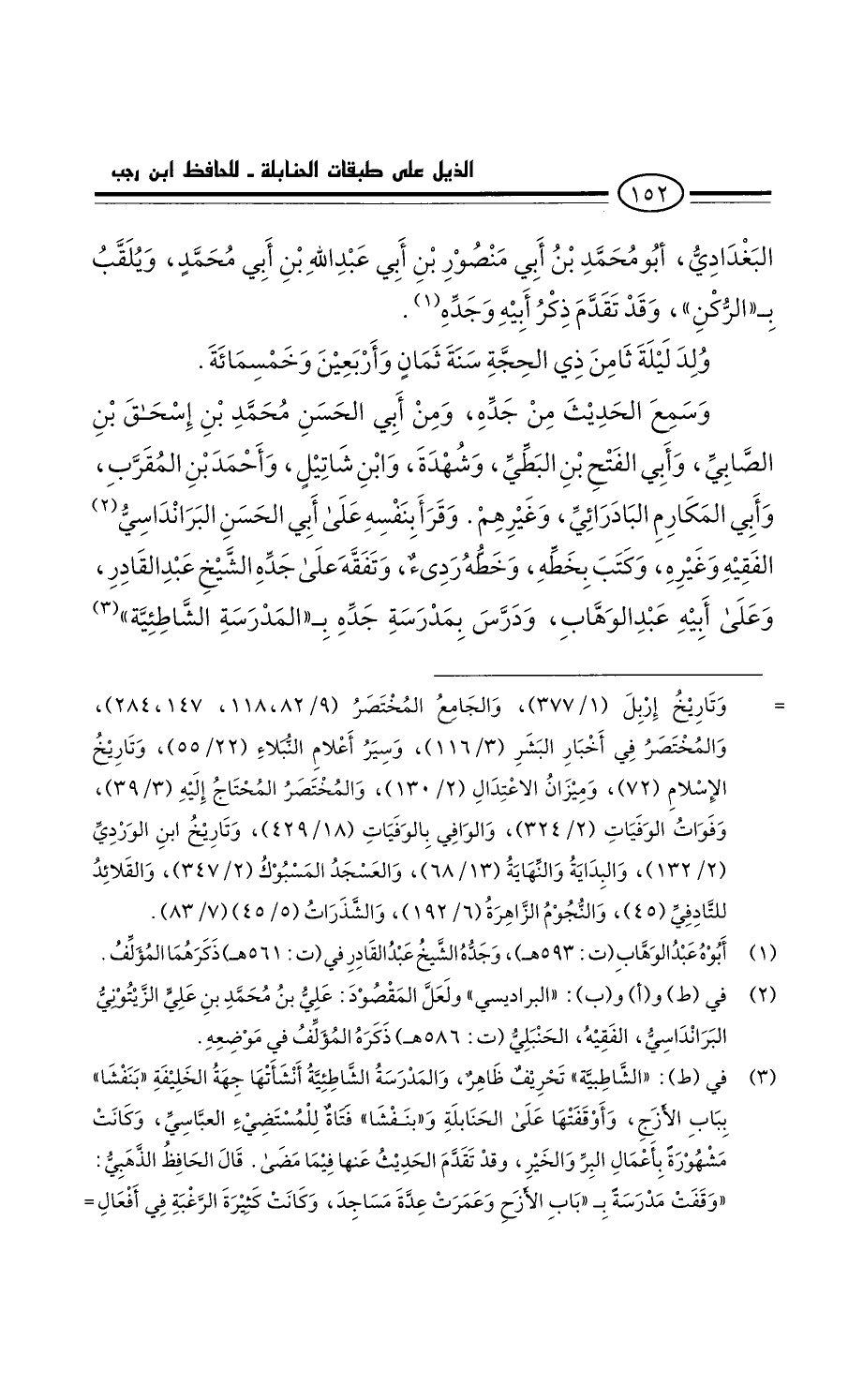 البغدادي، أَبُو مُحَمَّد بْن أَبِي مَنْصُور بْن أَبِي عَبْد اللَّهِ بْن أَبِي مُحَمَّد، ويلقب بالركن: وقد تقدم ذكر أبيه وجده، ولد ليلة ثامن ذي الحجة سنة ثمان وأربعين وخمسمائة.