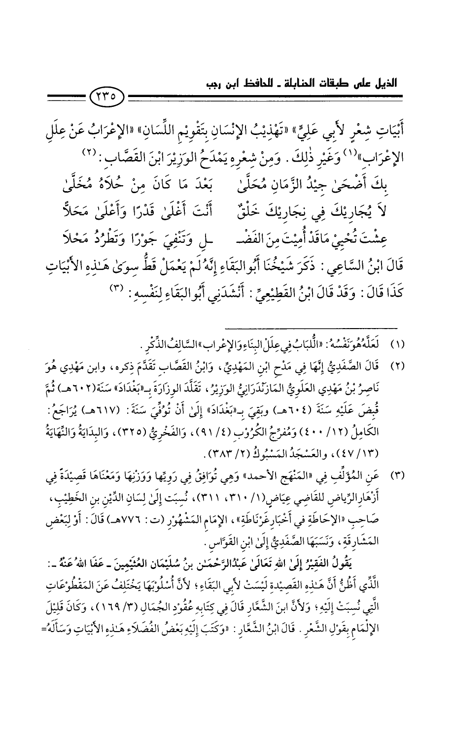 قَالَ ابْن الساعي: ذكر شيخنا أَبُو البقاء: أَنَّهُ لَمْ يعمل قط سِوَى هذه الأبيات كَذَا قَالَ، وَقَدْ قَالَ ابْن القطيعي: أنشدني أَبُو البقاء لنفسه: